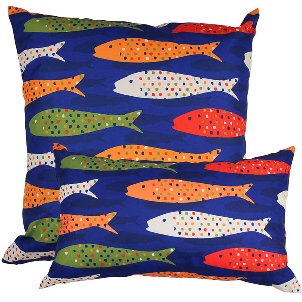 Bring playful coastal energy to your outdoor setting with the Sardinia Splash cushion. Featuring a lively school of multicoloured fish swimming across a rich ocean-blue backdrop, this bold design captures the joy of seaside living. The vibrant pops of orange, green, red, and white create a cheerful statement that brightens any patio, deck, or poolside lounge. Crafted from durable, fade-resistant fabric, it’s designed to handle the elements while keeping your outdoor space looking fresh, fun, and full of personality.
