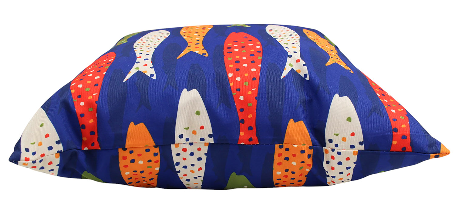 Bring playful coastal energy to your outdoor setting with the Sardinia Splash cushion. Featuring a lively school of multicoloured fish swimming across a rich ocean-blue backdrop, this bold design captures the joy of seaside living. The vibrant pops of orange, green, red, and white create a cheerful statement that brightens any patio, deck, or poolside lounge. Crafted from durable, fade-resistant fabric, it’s designed to handle the elements while keeping your outdoor space looking fresh, fun, and full of personality.