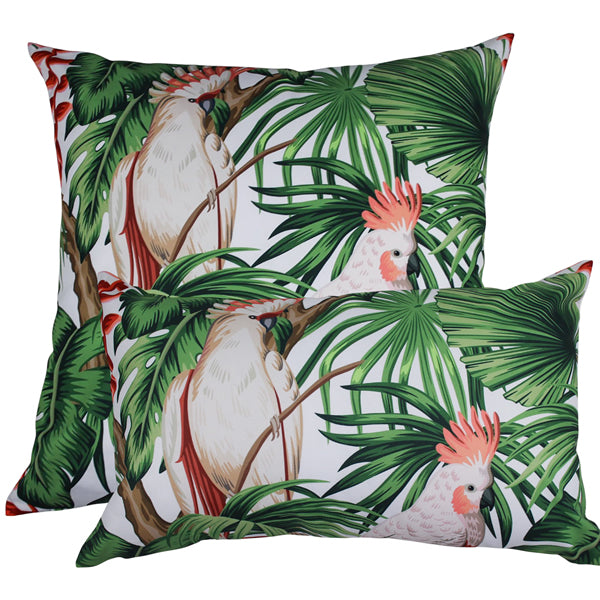 Turn your outdoor space into a tropical retreat with this stunning Cockatoo Paradise cushion. Featuring elegant cockatoos perched among lush green palms and vibrant foliage, its lively print brings a burst of Australian charm to your alfresco setting. The vivid colours and detailed design pop beautifully against the crisp white background, adding freshness and flair to any outdoor lounge or patio. Made from durable, weather-resistant fabric, it’s designed to withstand the elements while keeping your space looking effortlessly stylish.