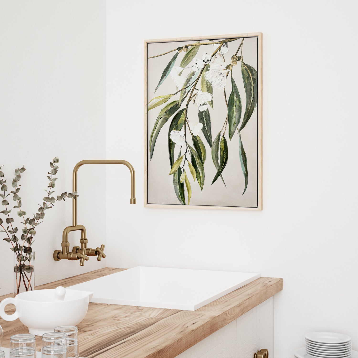 Gum In Peace Painting Inspired By Australian Native Fauna And Florals. Printed On Canvas And Hand Painted To Give Texture And Depth, With Natural Polyresin Frame. Supplied ready to hang with a string on the back.