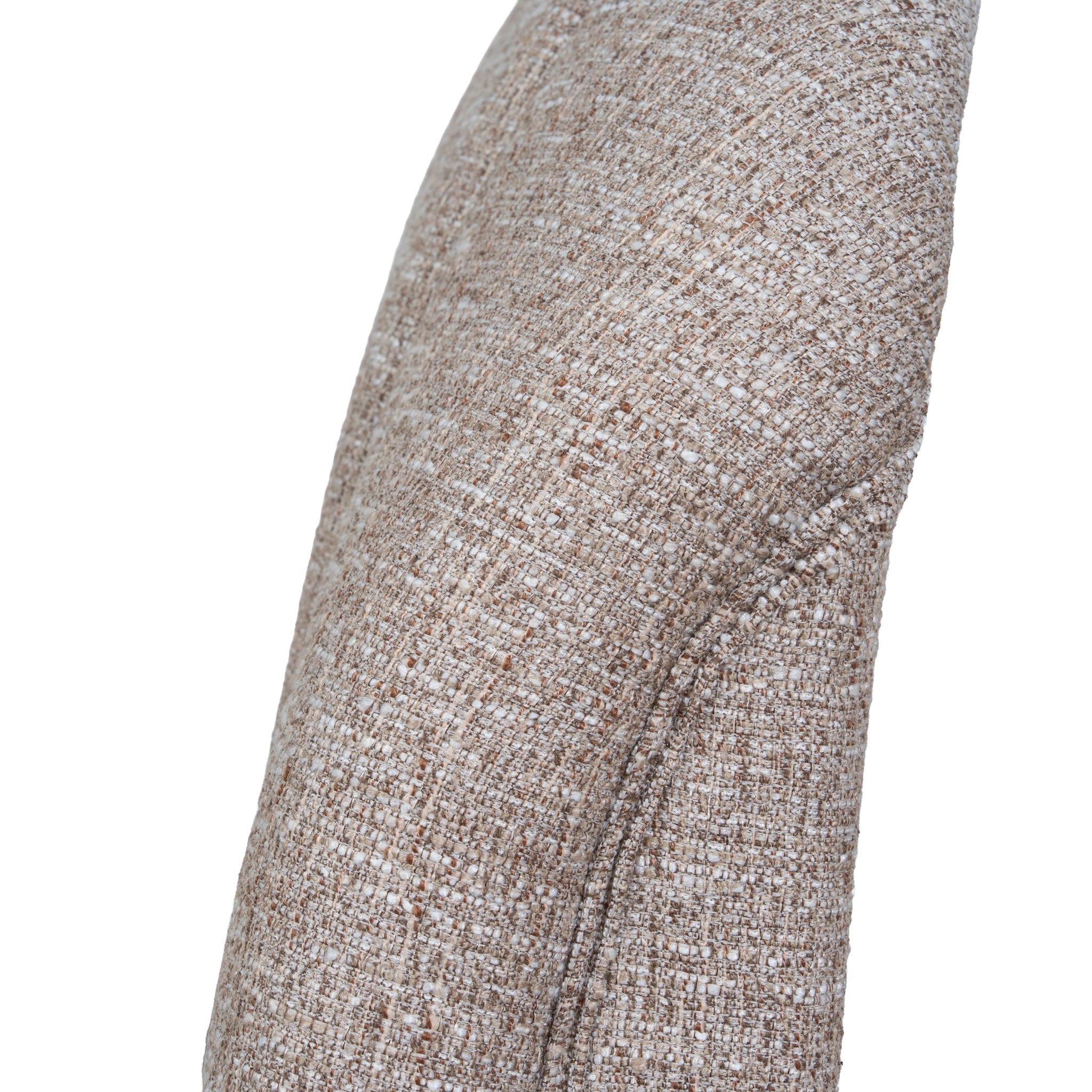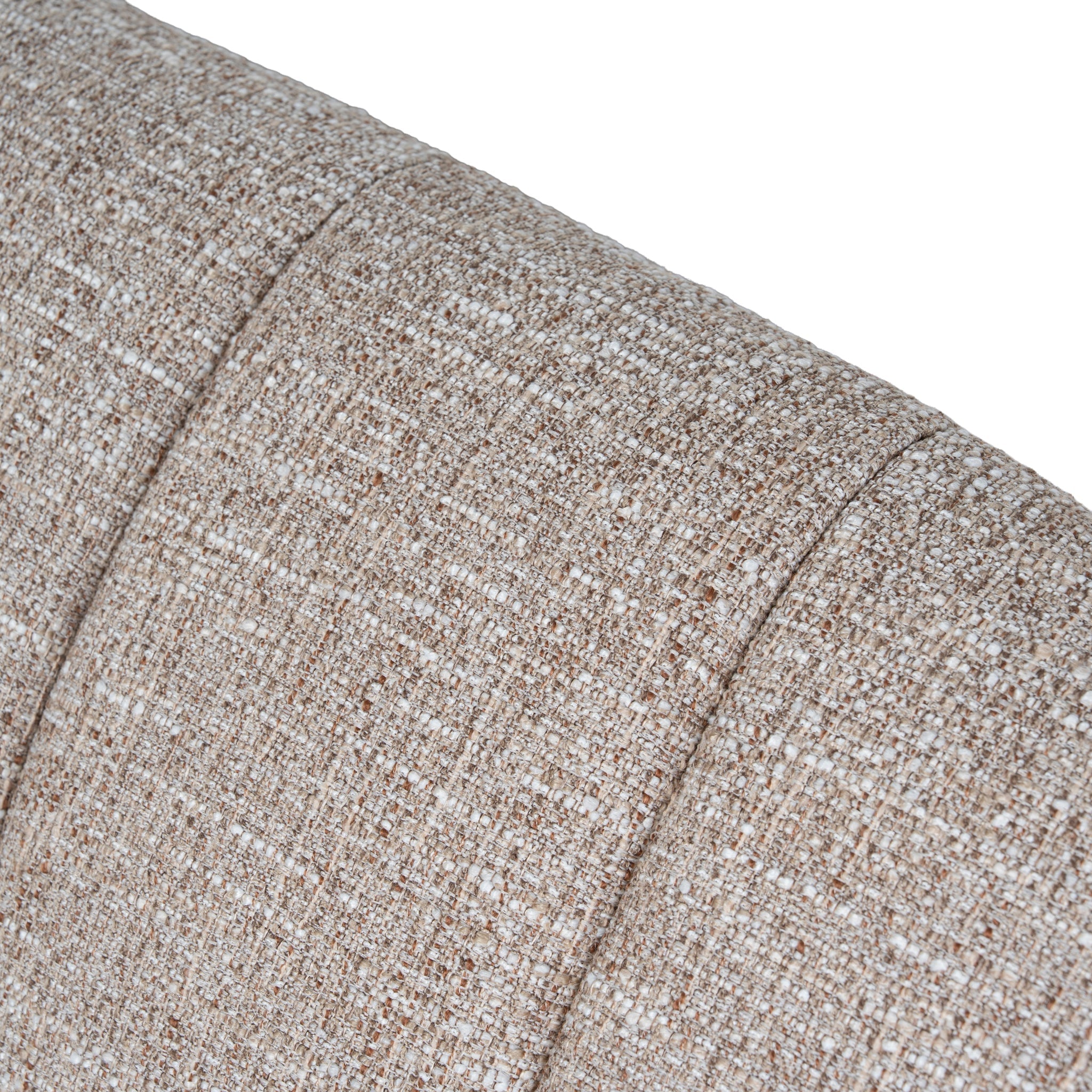- Upholstered in soft linen fabric with a neutral stonish beige tone