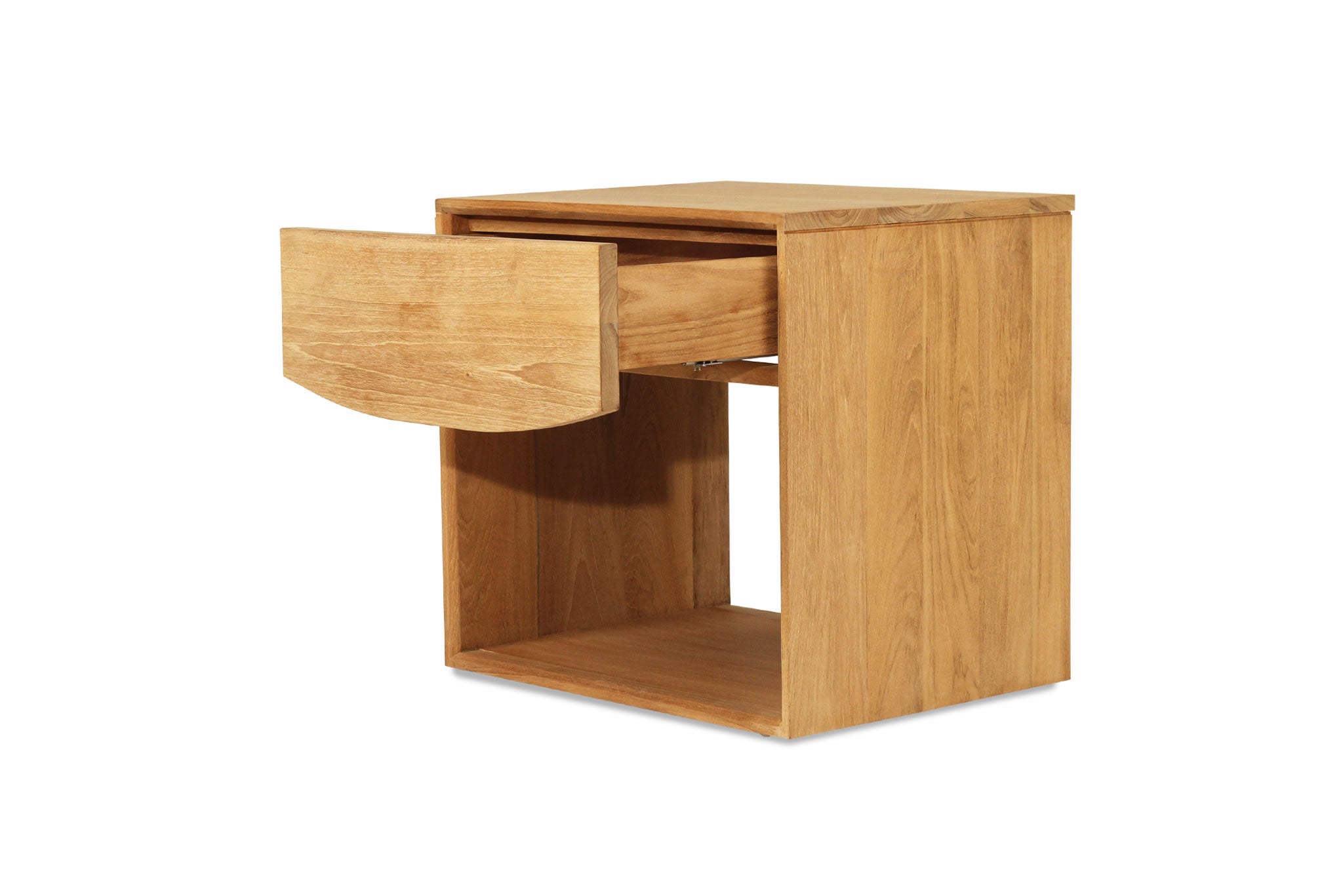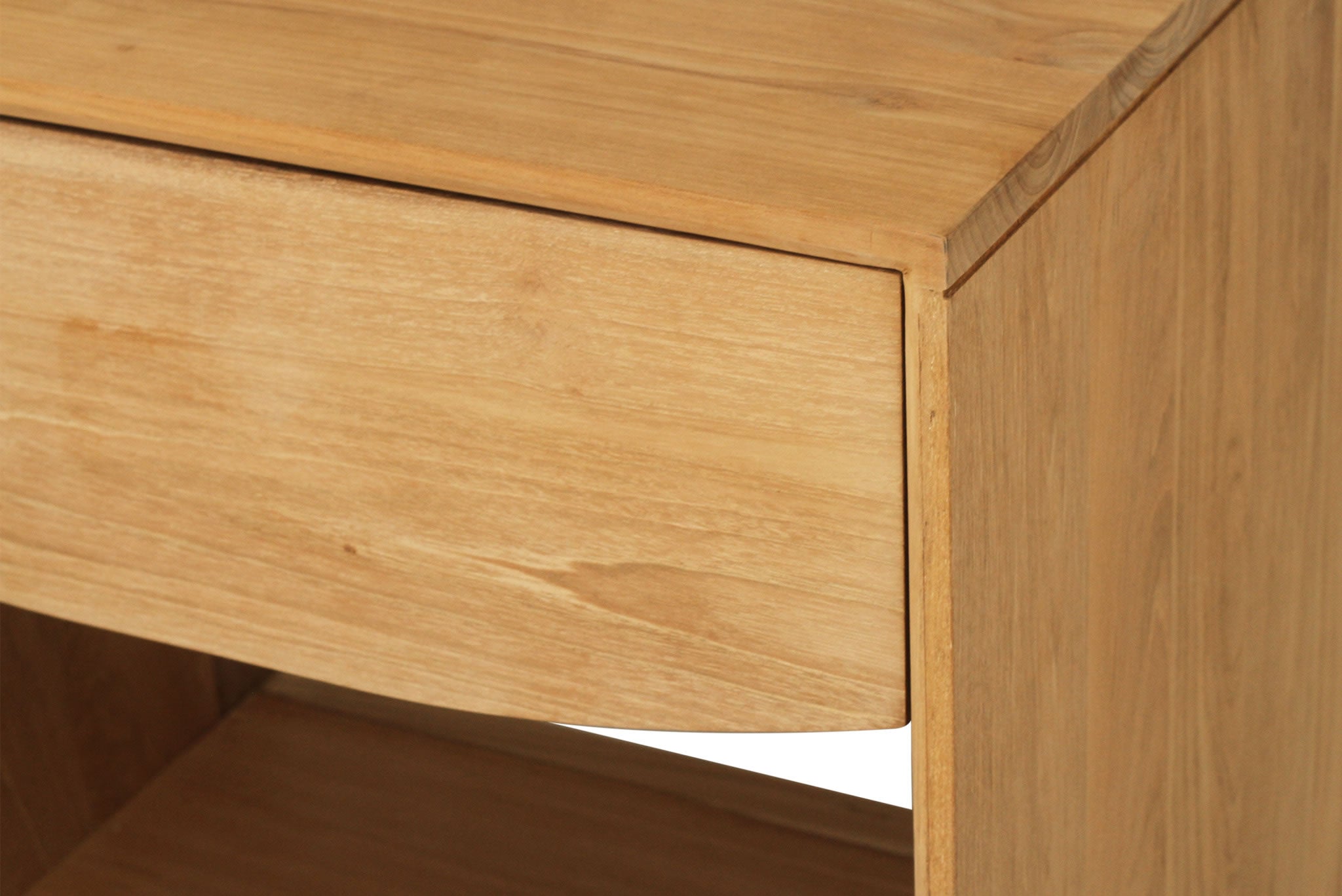 Made from high grade sustainable teak, the Koa Bedside Table is presented with a fine sanded finish and will complete any bedroom. The Koa Bedside Table features 1 opening drawer and is solid and unique in its structure and design.