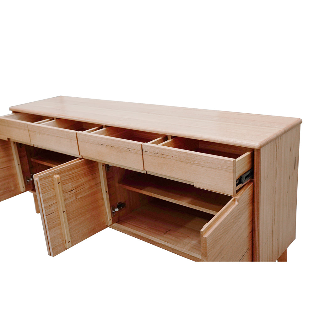 1.8M 4 Doors & 4 Drawers Buffet, Solid Tasmanian Oak Top, Doors & Drawer, veneer on the side, dovetail connections, Fully extendable Drawer with clear lacquer, satin finish