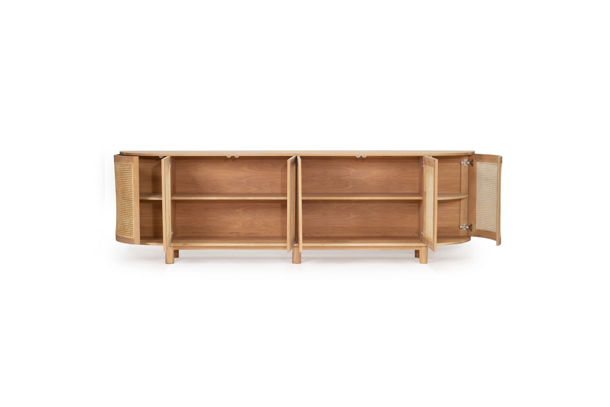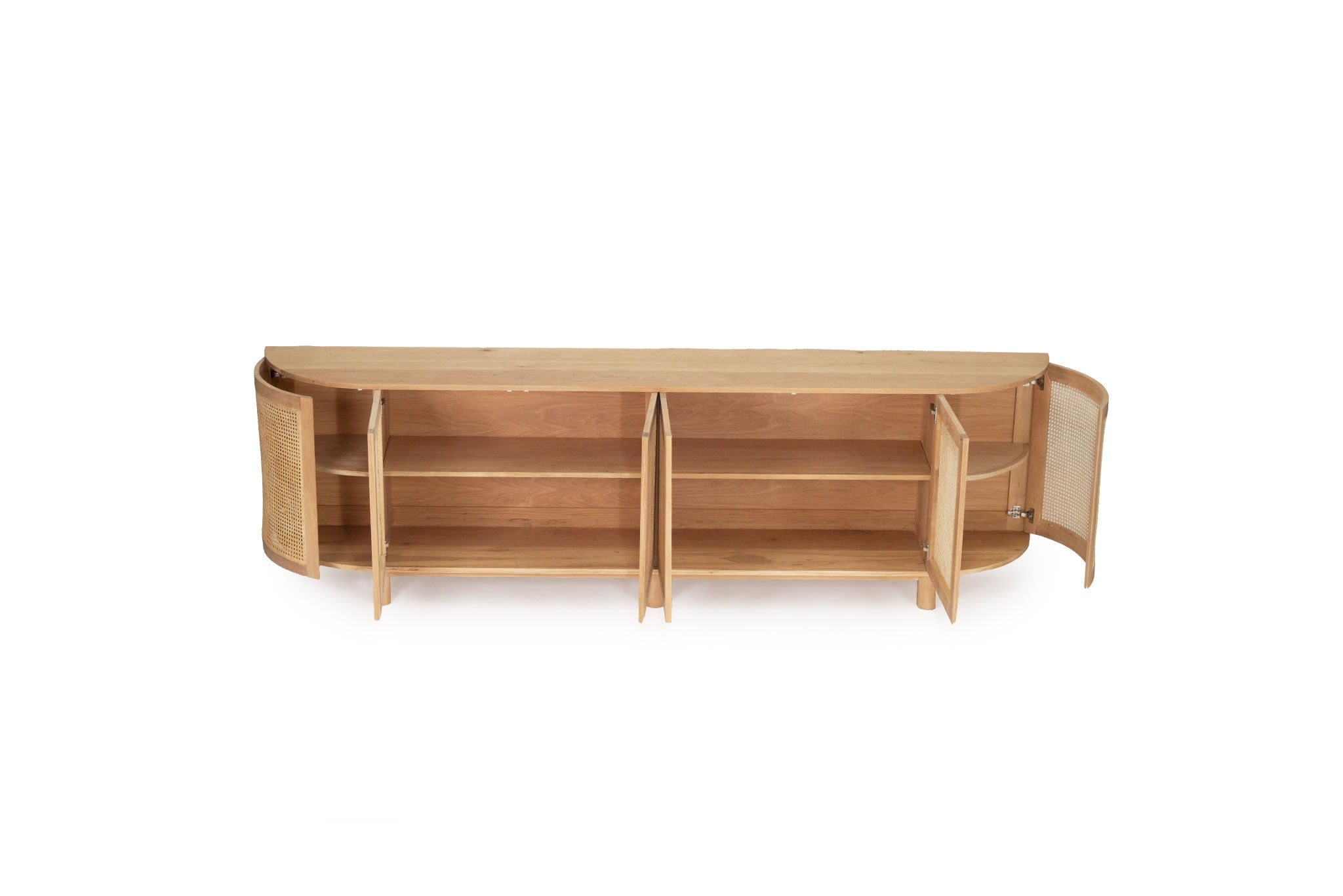 Inspired by the raw coastal beauty of the Sunshine Coast, the Iluka Sideboard is created from 100% natural American Oak that has been ethically and sustainability sourced. It has been sanded so smooth and fine and maintains a "raw" look thanks to the Osmo PolyX Raw Oil finish. It's extremely solid, perfect to be handed down from generation to generation. It has 4 doors that open on push hinges and adjustable shelving. No handles are required as the push magnetic locks hold the doors in place. To open, simply push on the door and it pop open with ease.