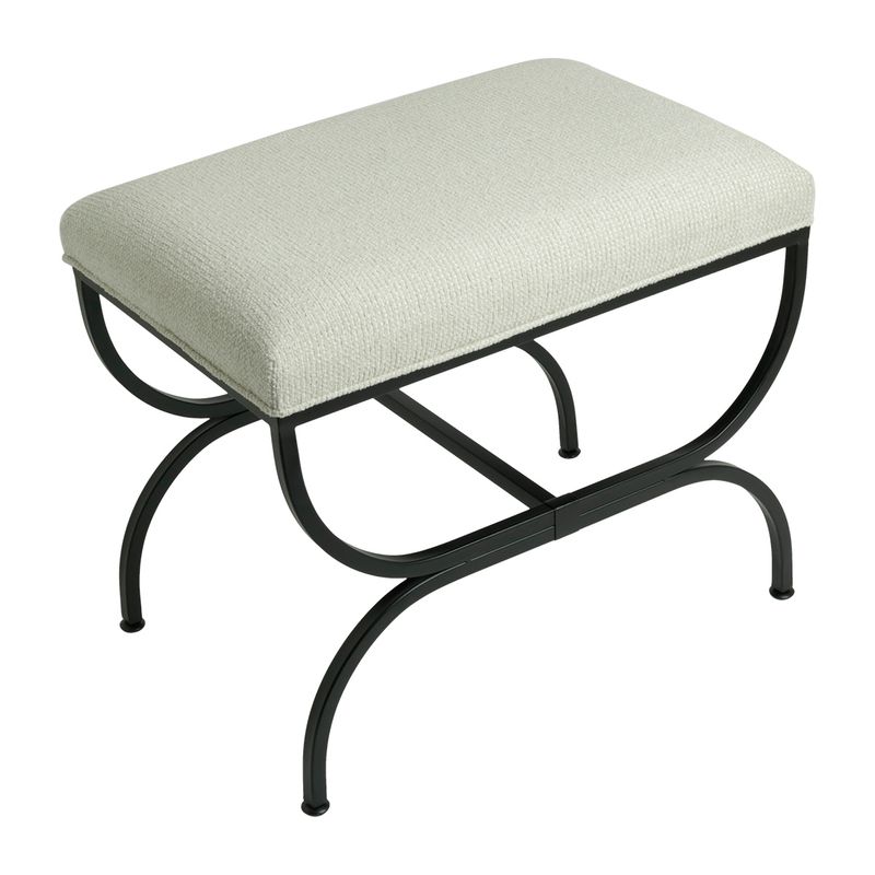 The Novak Stool pairs sculptural curves with tailored upholstery for a refined, modern aesthetic. Featuring a gently arched matte black metal base, it is topped with a generously cushioned seat in either speckle ecru or butterscotch chenille. Perfect as a dressing table stool, entryway seat or occasional accent, the Novak combines visual elegance with everyday functionality. Its versatile silhouette and premium finish make it a sophisticated addition to both classic and contemporary interiors.