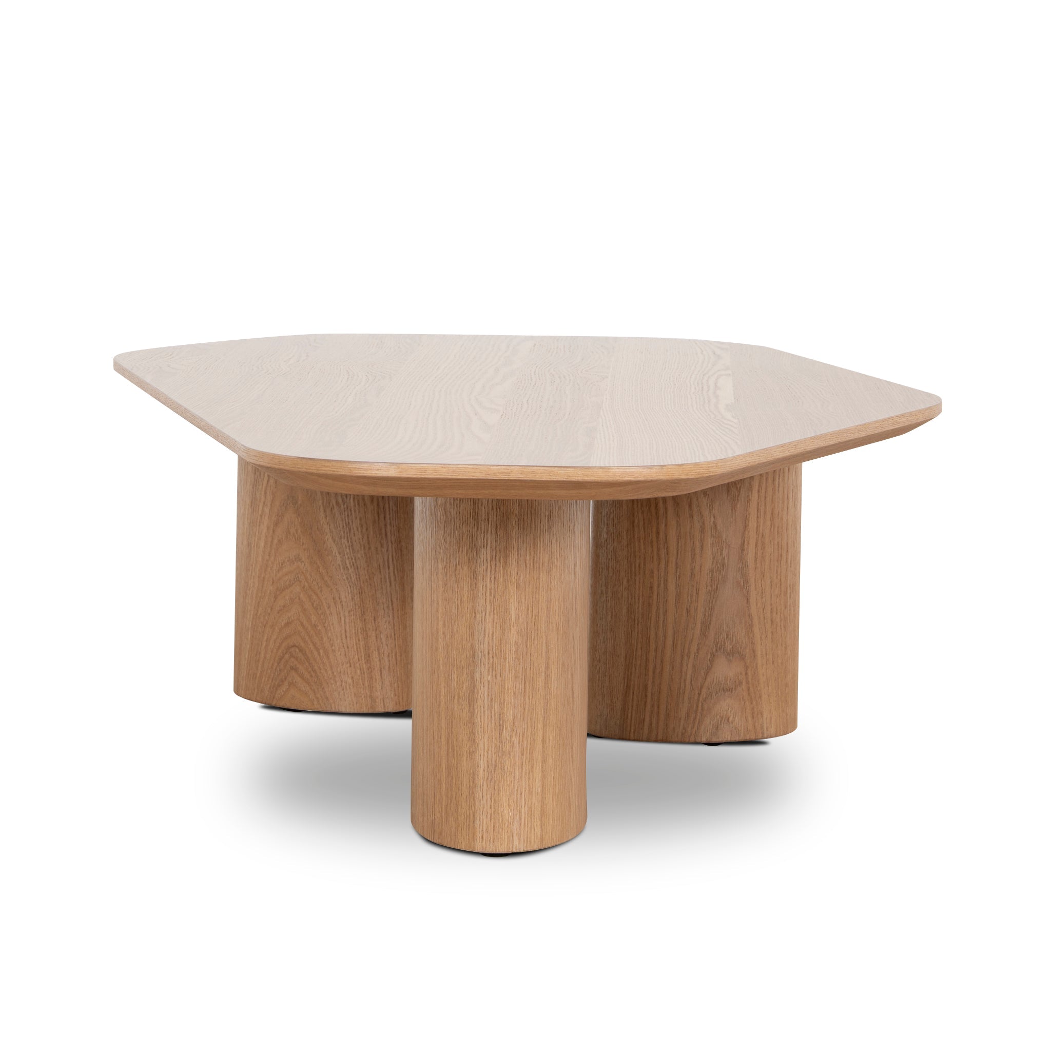 - Tabletop crafted from engineered wood with a natural veneer finish