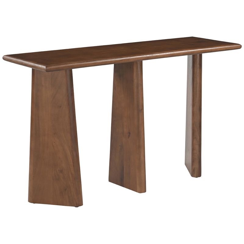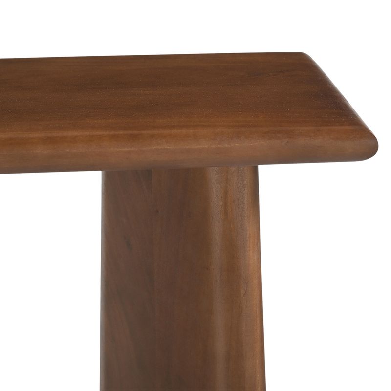 Designed to enhance entryways, hallways, or living spaces, this Cassidy Console Table balances aesthetic impact with everyday function. It brings sculptural form and bold elegance to modern interiors. Crafted from solid acacia wood, it features a curved top, tapered legs, and clean architectural lines for a refined, contemporary silhouette. Available in Black and Walnut finishes, it adds a versatile statement to a wide range of interior styles.