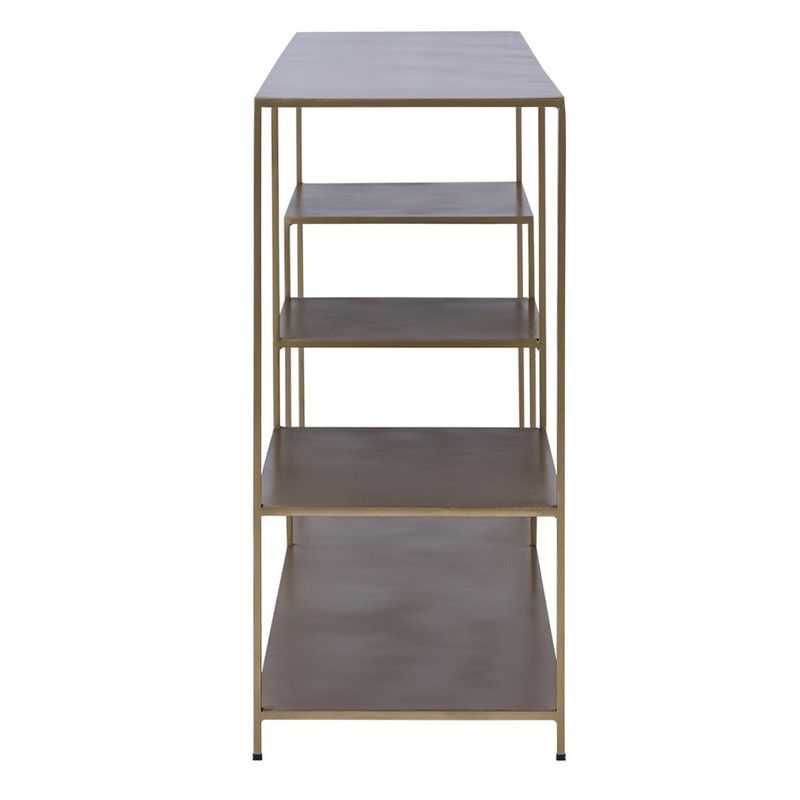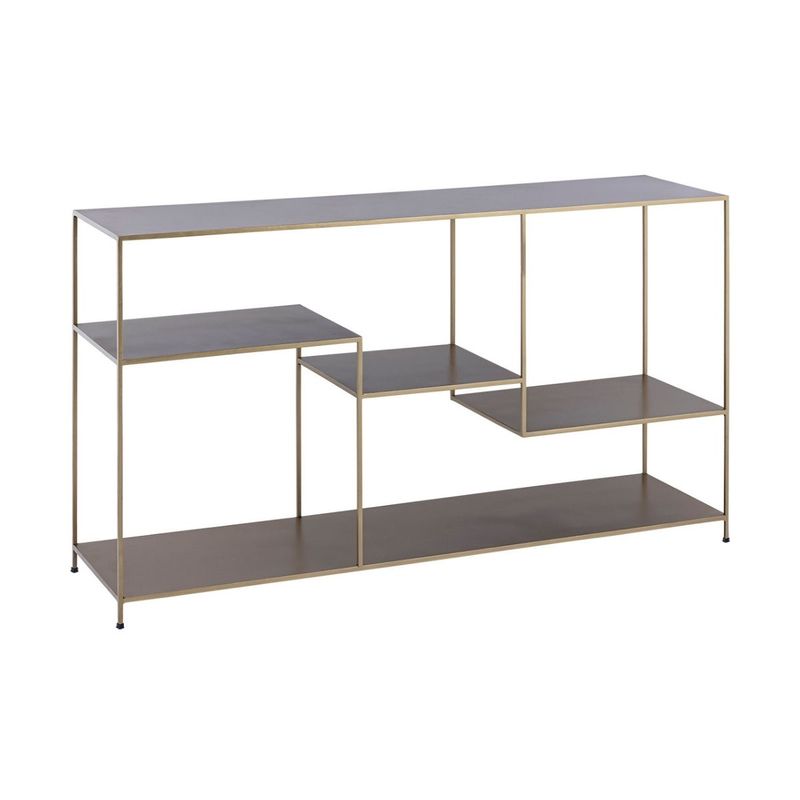 Elevate your entryway or living room with the Elliot Console Table, crafted from durable aluminium in an Antique Gold finish. Its striking stepped shelving design adds visual interest while offering practical space for display and storage. With no assembly required and an eco-conscious packing approach, this bold, architectural piece makes a modern statement in any interior setting.