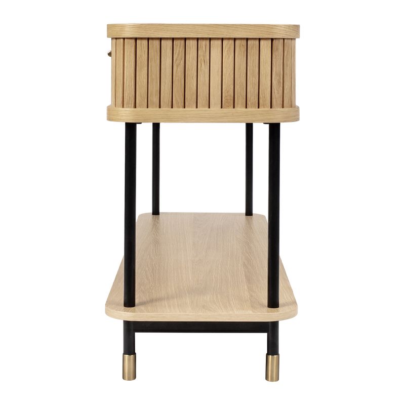 A refined accent from the new Sophia Range, the Sophia Console Table brings clean structure and understated texture to contemporary interiors. Defined by its vertical fluted panelling, streamlined silhouette, and brass-capped legs, it balances elegant design with everyday practicality. Perfect for hallways, entryways, or living spaces, this versatile piece offers a stylish surface for display and is available in White, Black, and Oak Natural finishes to suit a variety of modern aesthetics.