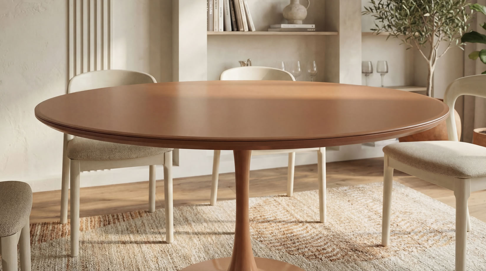 Elan is defined by its sculptural pedestal base and smooth matte surface. The rounded form creates visual softness while maintaining strong contemporary character.