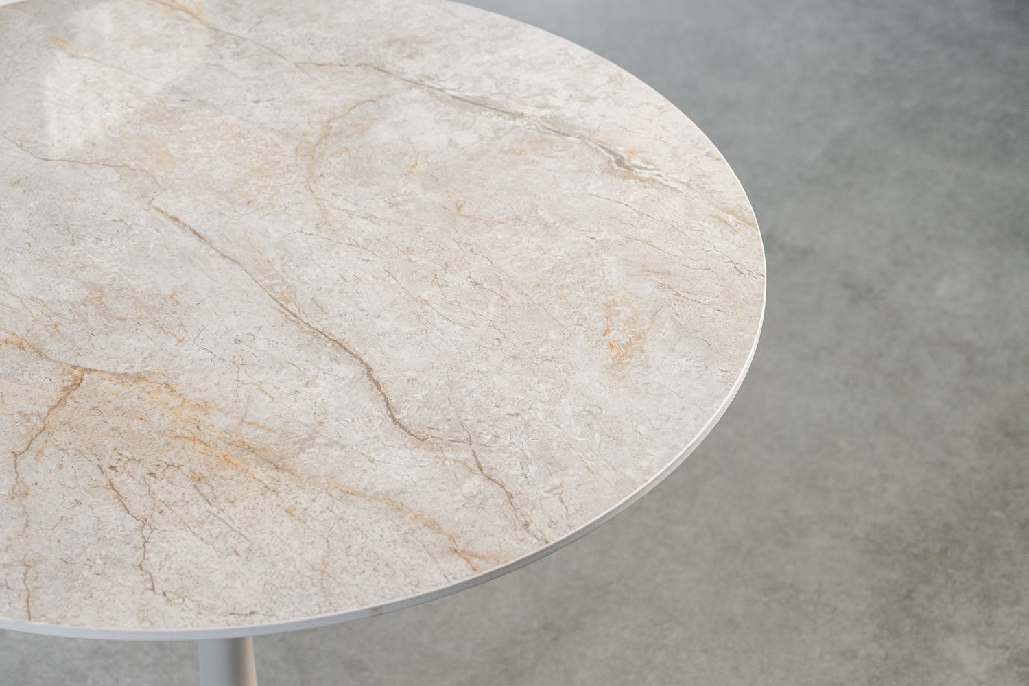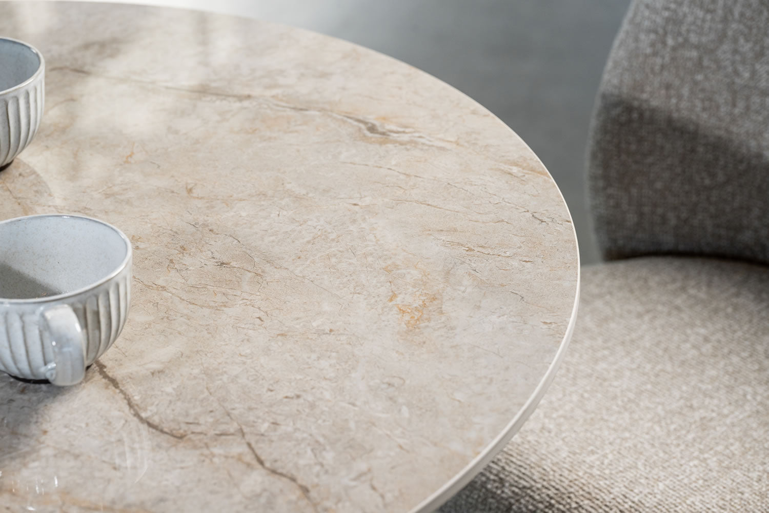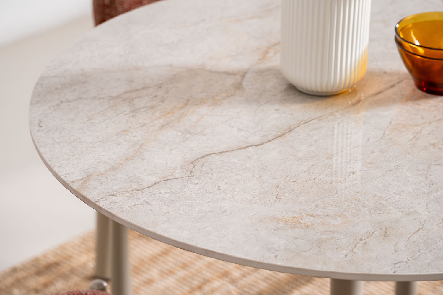 - Material: top: glossy ceramic with a marble effect frame: cappuccino powder-coated metal