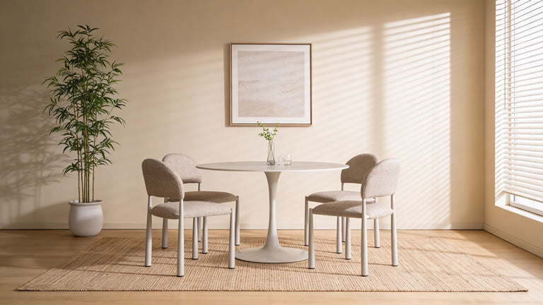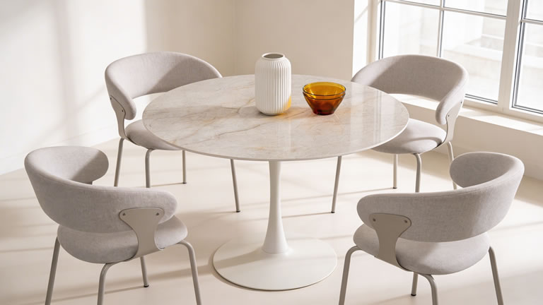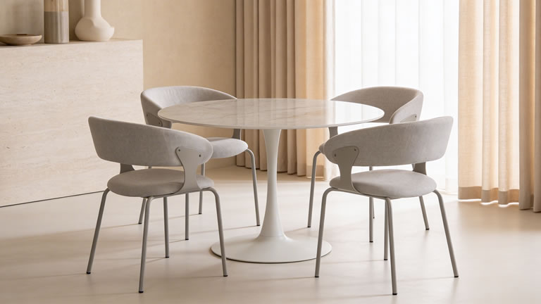 The Scandi Large Dining Table in Rocky extends our existing Scandi collection, offering greater scale while maintaining the clean, minimalist identity the range is known for. Responding to growing demand, the Rocky finish is now available not only in the 90cm diameter, but also in a larger 120cm option — providing enhanced flexibility for different dining spaces. With its soft round form and balanced proportions, Scandi continues to reflect Nordic-inspired simplicity and functional elegance. The muted Rocky tone enhances spatial calm, making it ideal for contemporary interiors that value lightness and understated design.