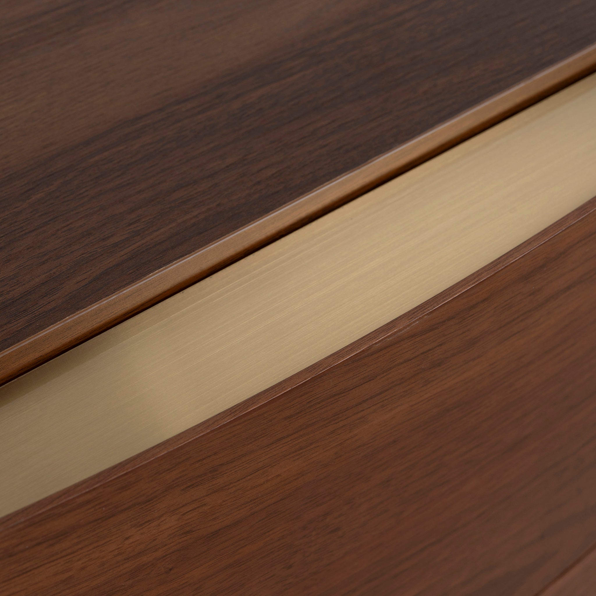 - Curved storage top edges with a subtle matte bronze finish