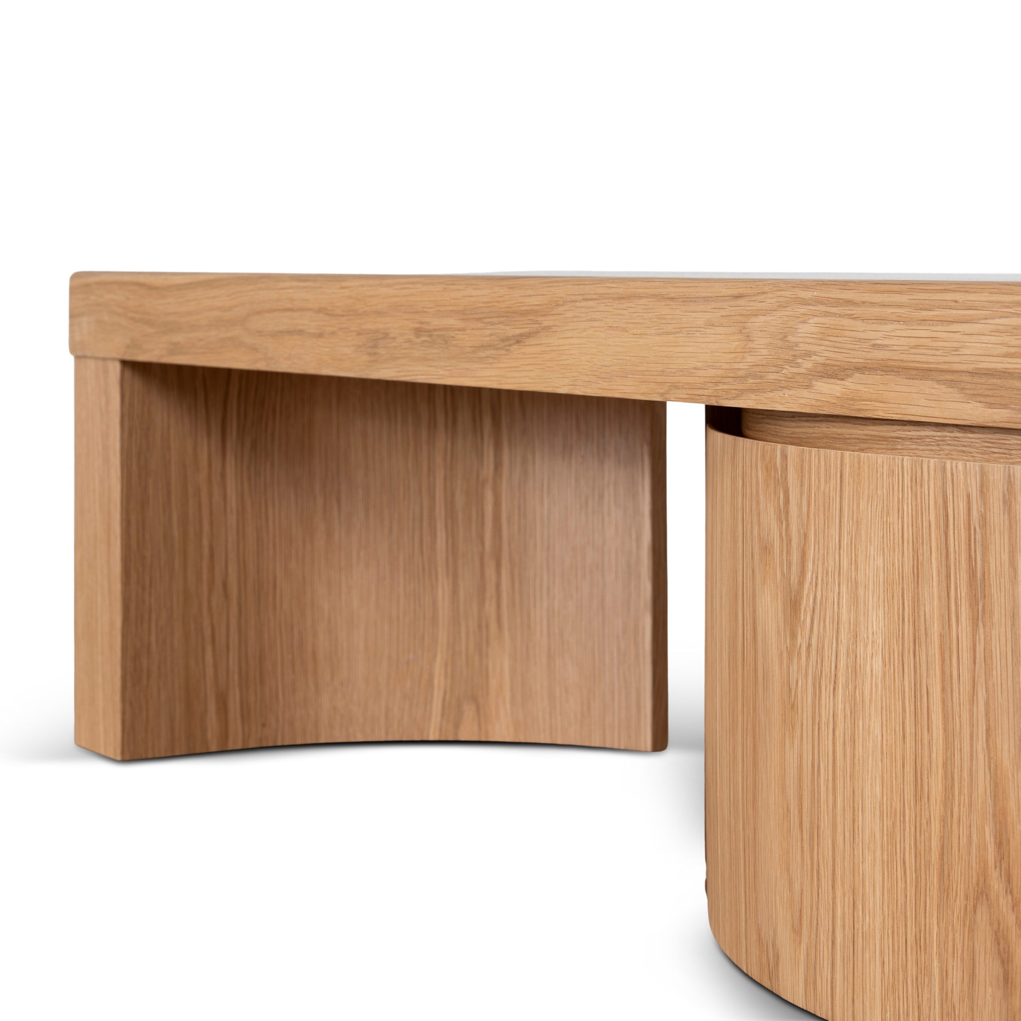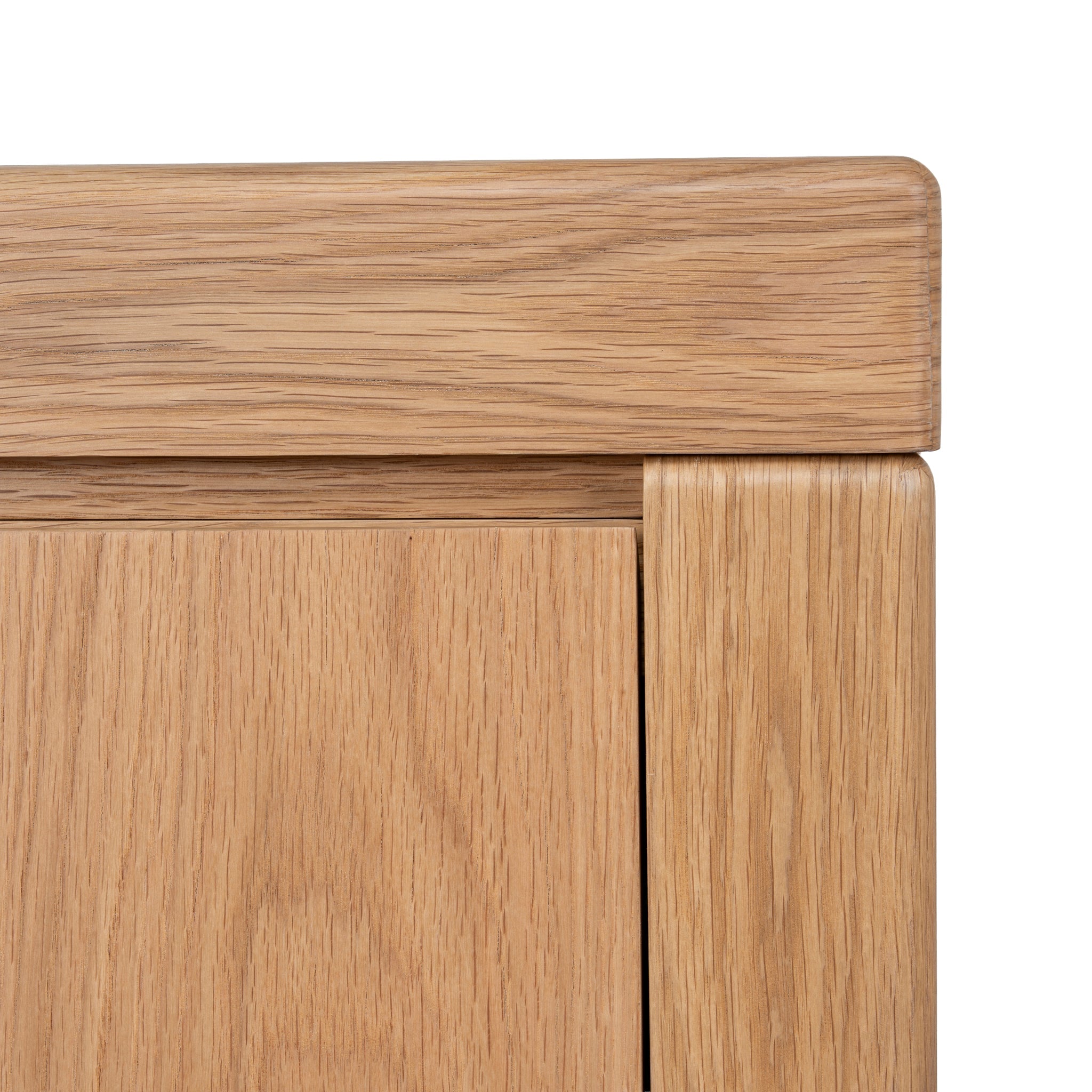 - Curved panel detailing adds a sculptural, modern touch