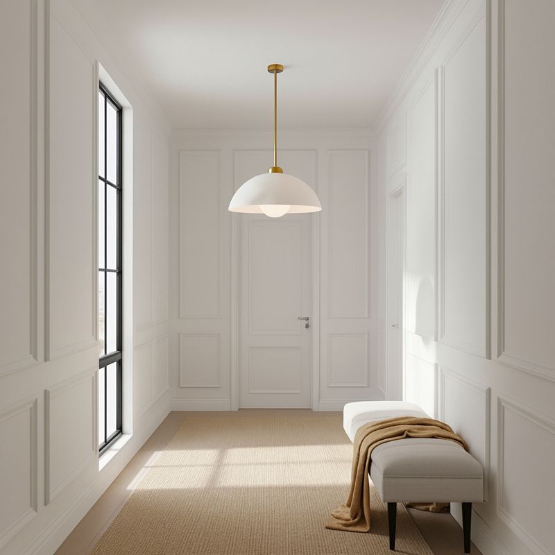The Bryson Pendant Light brings sculptural elegance to contemporary interiors. Featuring a smooth half-dome shade with an alabaster-look finish and natural veining detail, it captures the timeless beauty of stone without the weight. A brushed brass rod and canopy add a touch of warmth and sophistication, creating a refined balance of texture and tone. Perfect for kitchens, dining areas, or hallways, the Bryson Pendant casts a soft, ambient glow that enhances any space with understated luxury.
