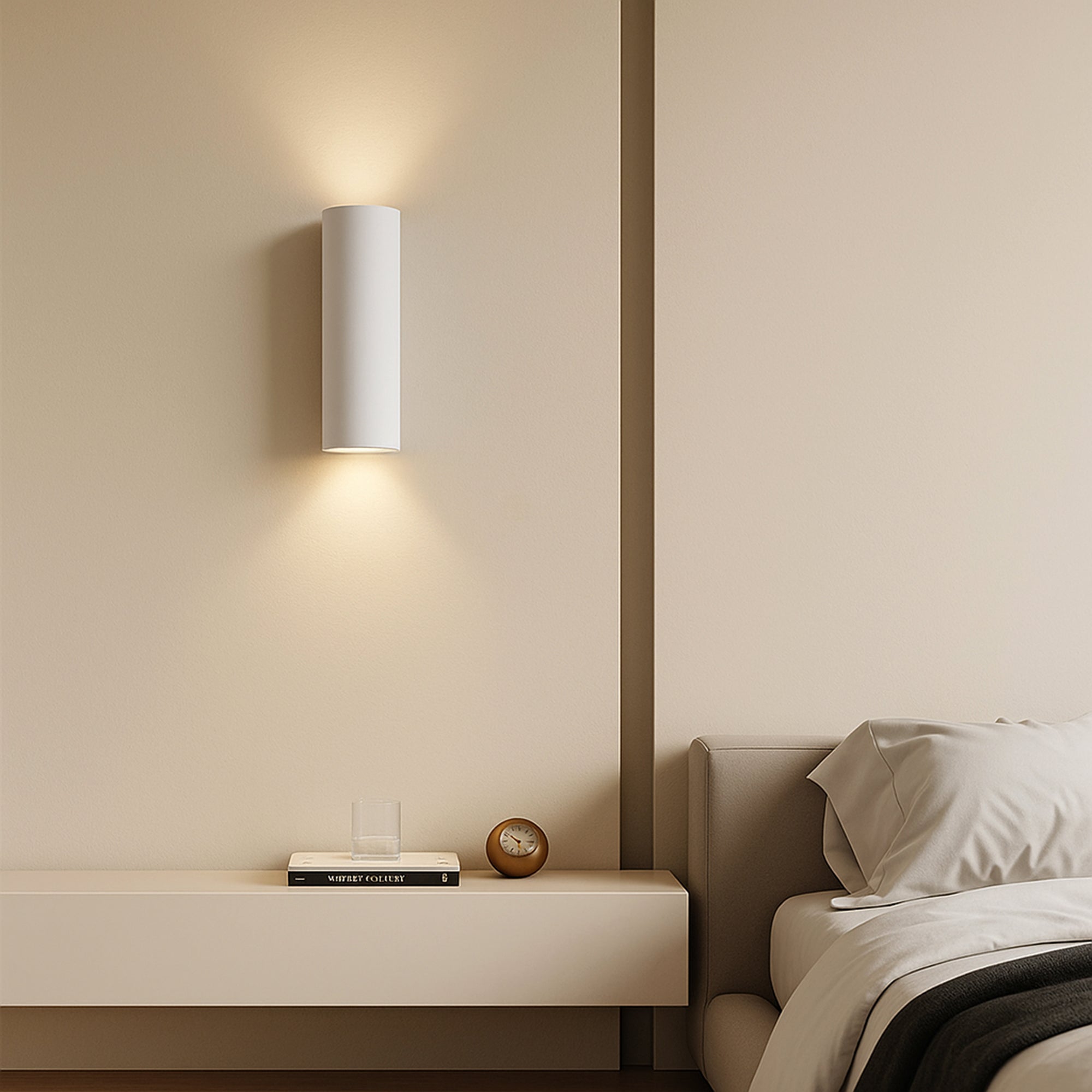 Elevate your modern space with the Onyx 2lt Plaster Wall Sconce, featuring a sleek contemporary minimalist design defined by its smooth white plaster cylinder shade, createing an abundance of welcoming light and active accents perfect for enhancing the atmosphere in your living room, bedroom, hallway, corridor, stairwell, or entryway, seamlessly combining functional lighting with stylish modern charm. The wall light finish is fully paintable to match a suitable color.
