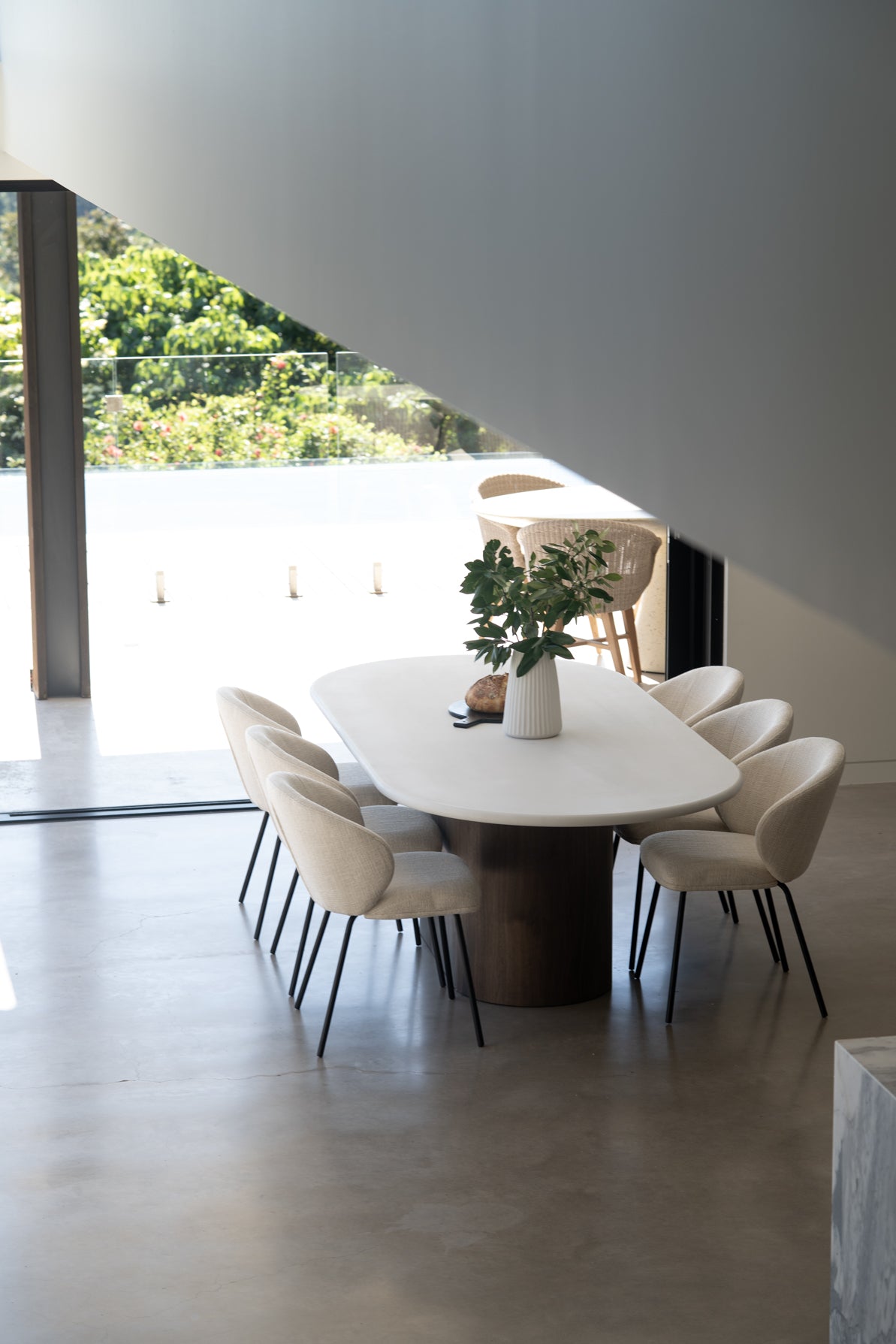 Sleek, stylish, and effortlessly comfortable - the Anders Dining Chair is designed to elevate any dining experience. Featuring a generously Natural coloured padded seat and back, upholstered for everyday comfort, and supported by a slim yet sturdy Black powder-coated steel frame, it strikes the perfect balance between form and function.