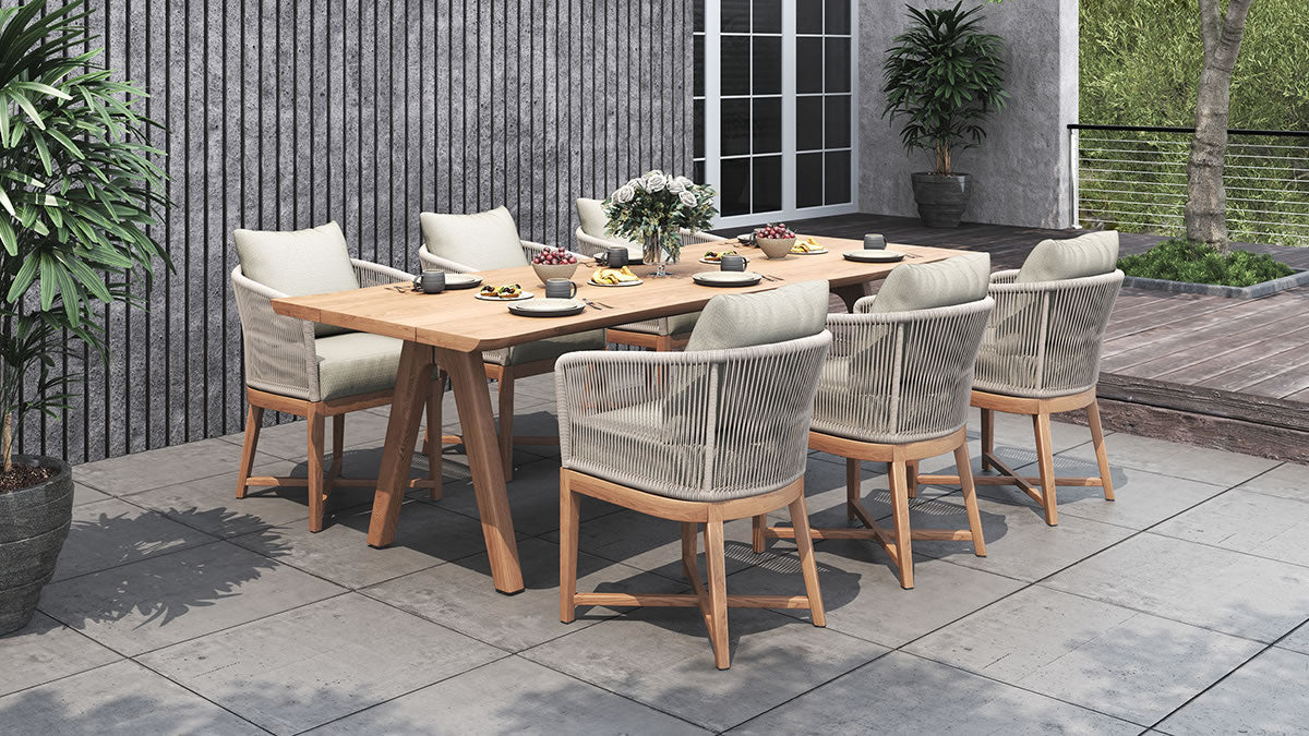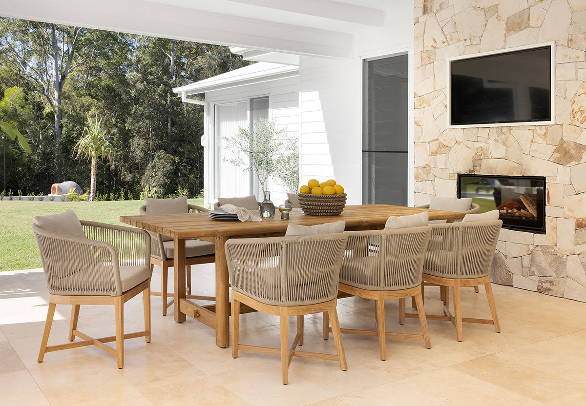 The Bronte Outdoor Dining Chair is built for the harsh elements of the Australian landscape with a gentle elegant touch. The frame is built using the premium & solid A grade teak timber and is wrapped in a marine grade outdoor rope making it perfectly suited for outdoor use. The quality quick dry foam is covered in a white Sunbrella fabric which can be machine washed (cold cycle). YKK zips ensure quality and ease of use. Matching Bronte Sofa also available from Abide Interiors.