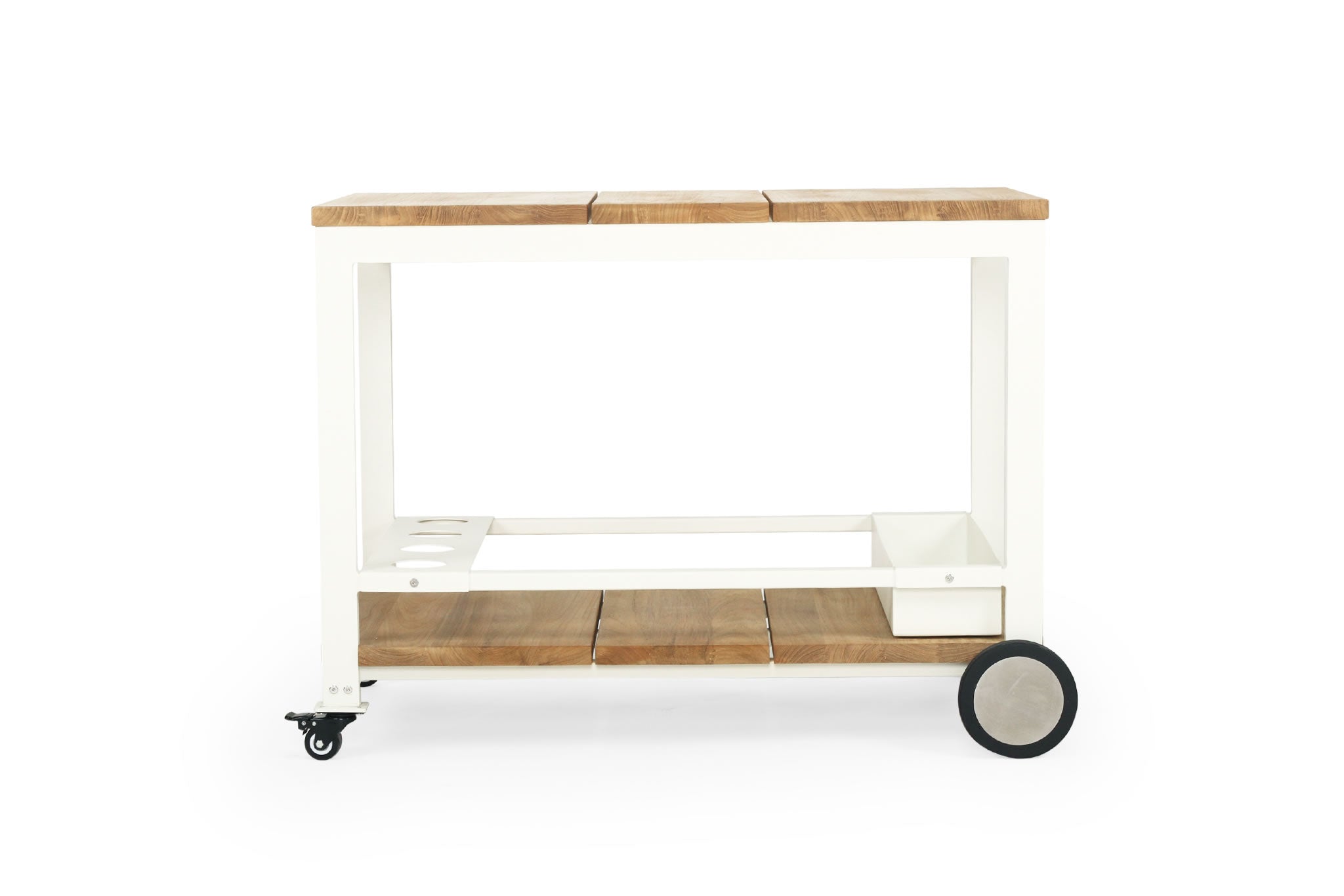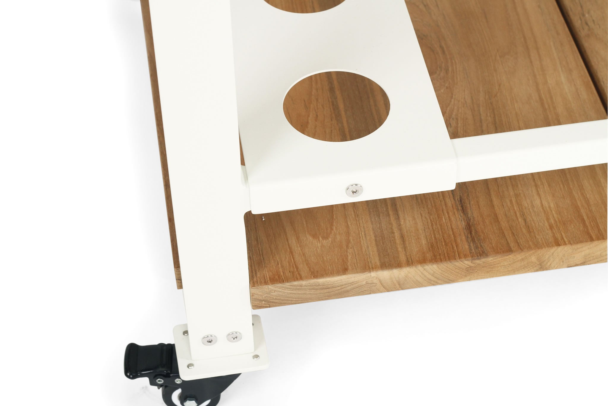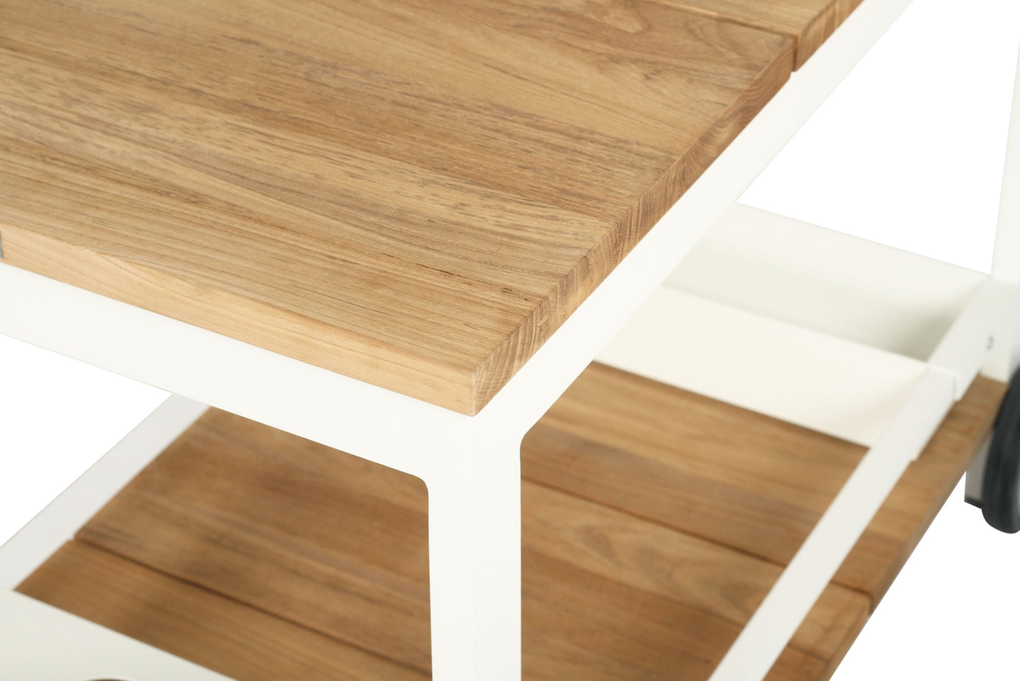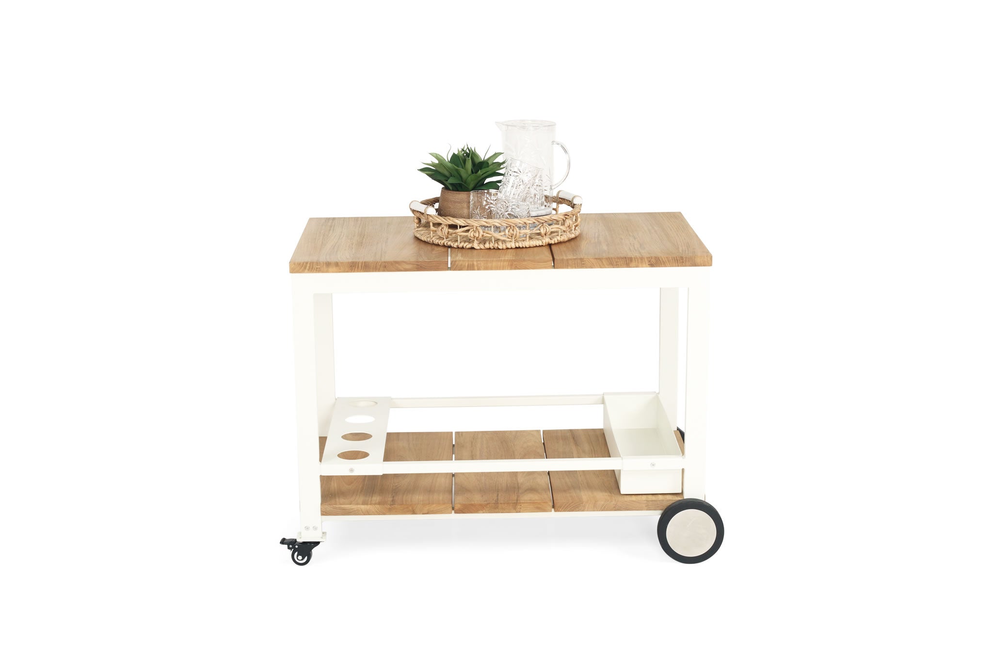 The Carmel Outdoor Bar Cart is made from solid high grade teak and is equally at home inside or out in the elements. Teak wood is characterized by its high strength properties and an extreme durability. The Carmel Outdoor Bar Cart also features extremely durable powder coated aluminium legs. This makes it an excellent choice for outdoor living and with regular maintenance will provide years of loyal service.