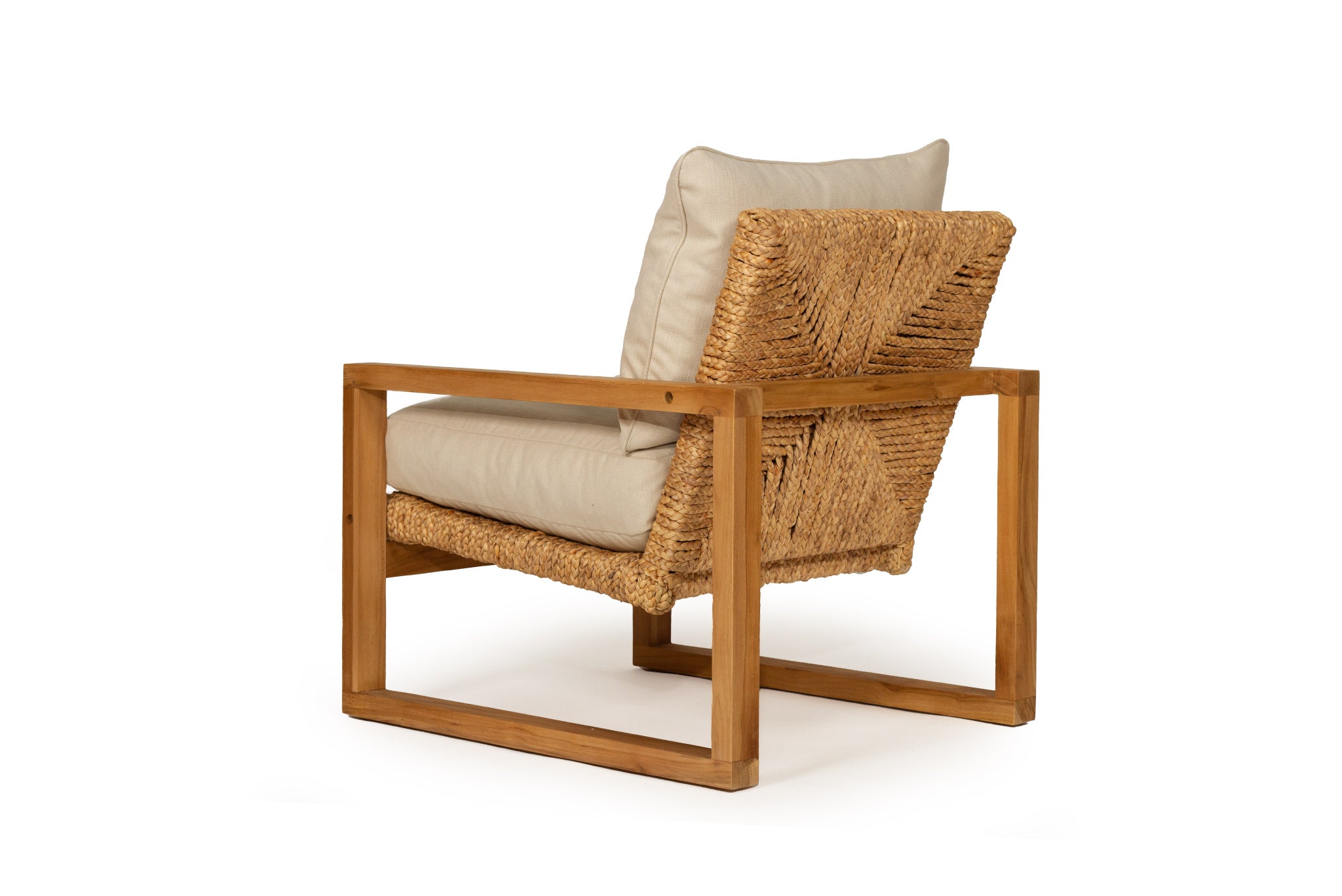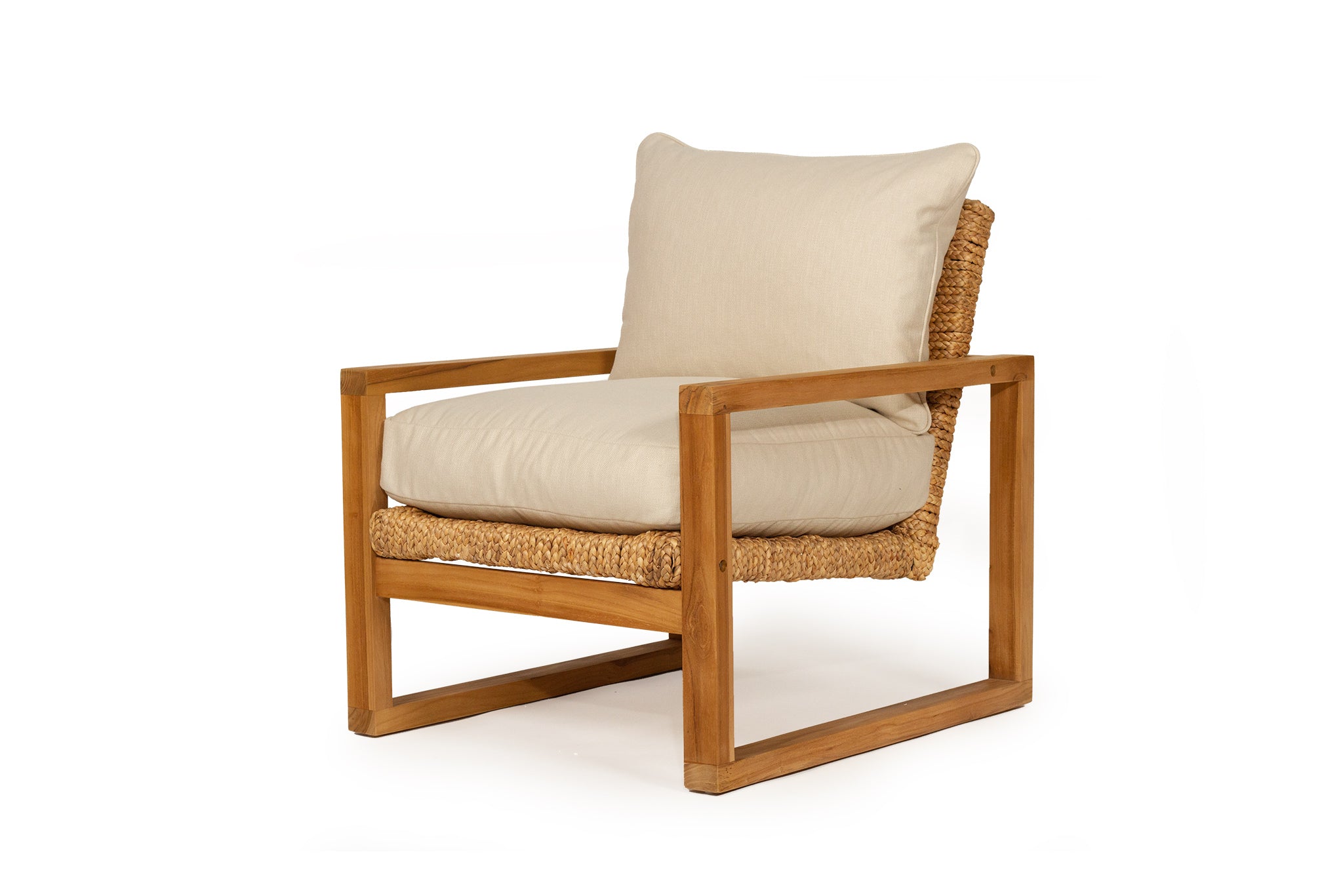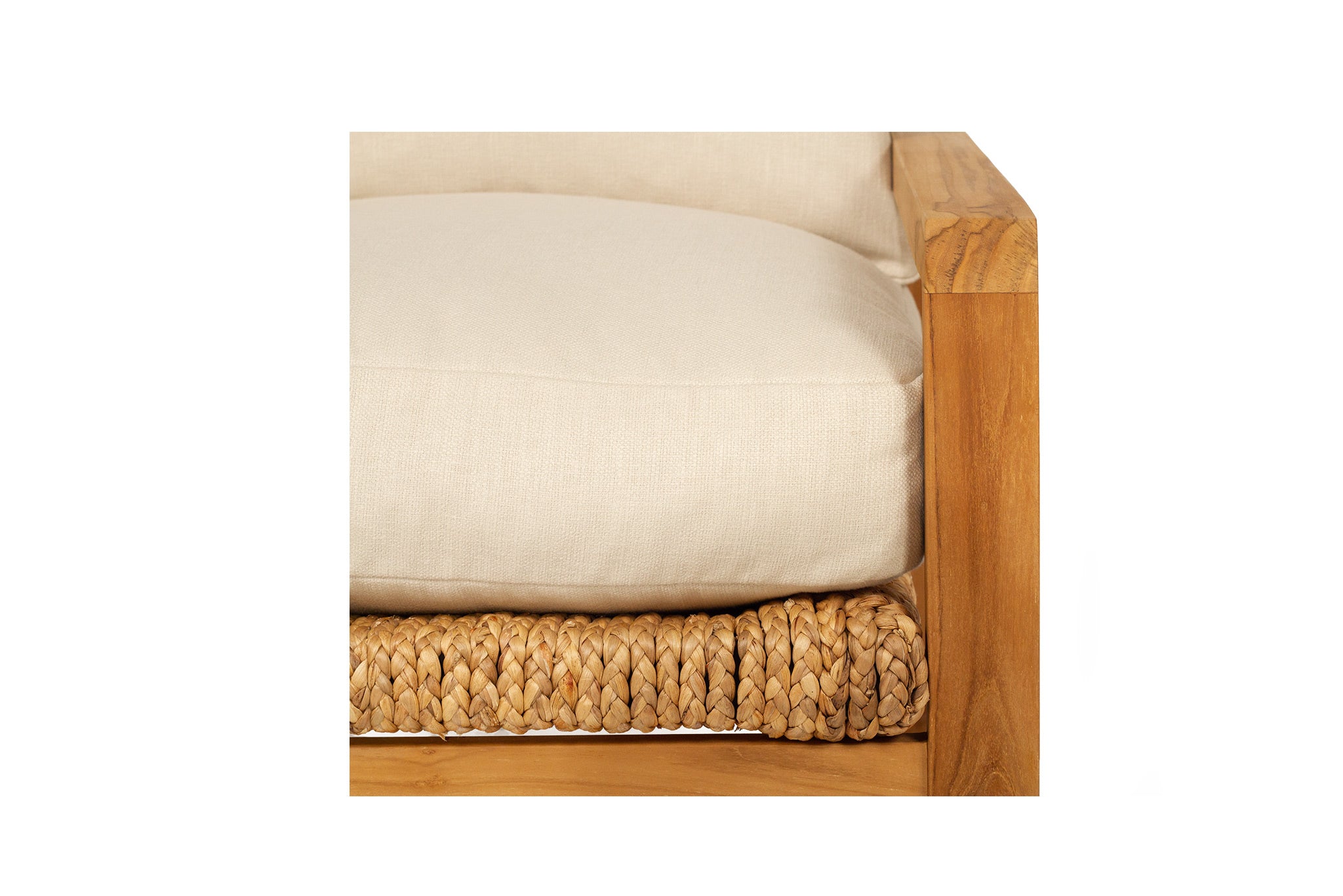 Featuring a sturdy frame hand made from sustainably sourced Teak and partially wrapped in woven Seagrass, the Cassie Armchair is as comfy as it looks! The Cassie Armchair also comes with foam and feathers seat and back cushions covered in Zepel StainGuard fabric