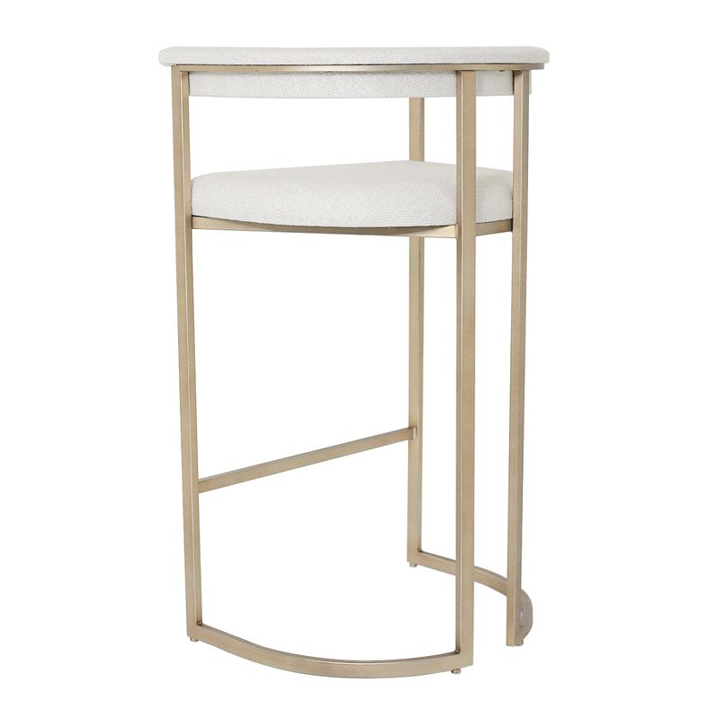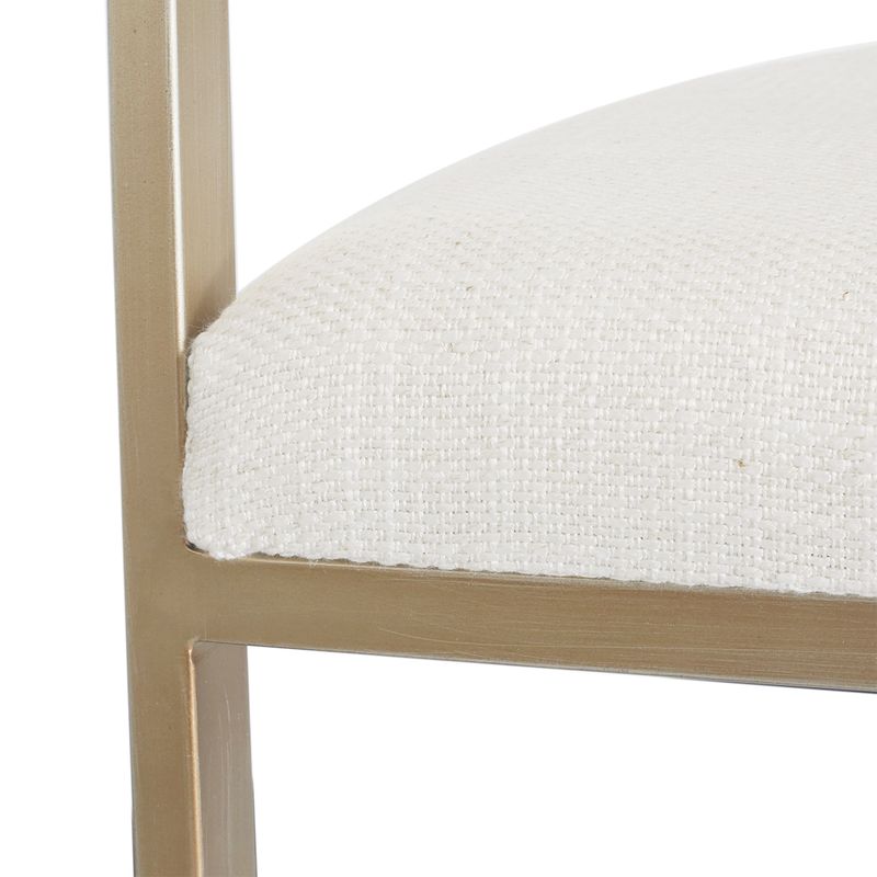 The Dino Bar Stool in Natural Linen offers elevated style for bar-height settings. Its curved backrest and cushioned seat, upholstered in soft natural linen, create a warm and inviting perch suitable for everyday use. Balanced by an antique brass finished frame, the stool delivers both modern elegance and lasting durability. Thoughtfully proportioned for bar-top heights, the Dino Bar Stool completes the cohesive look of the Dino Range. Also available in Chocolate linen.