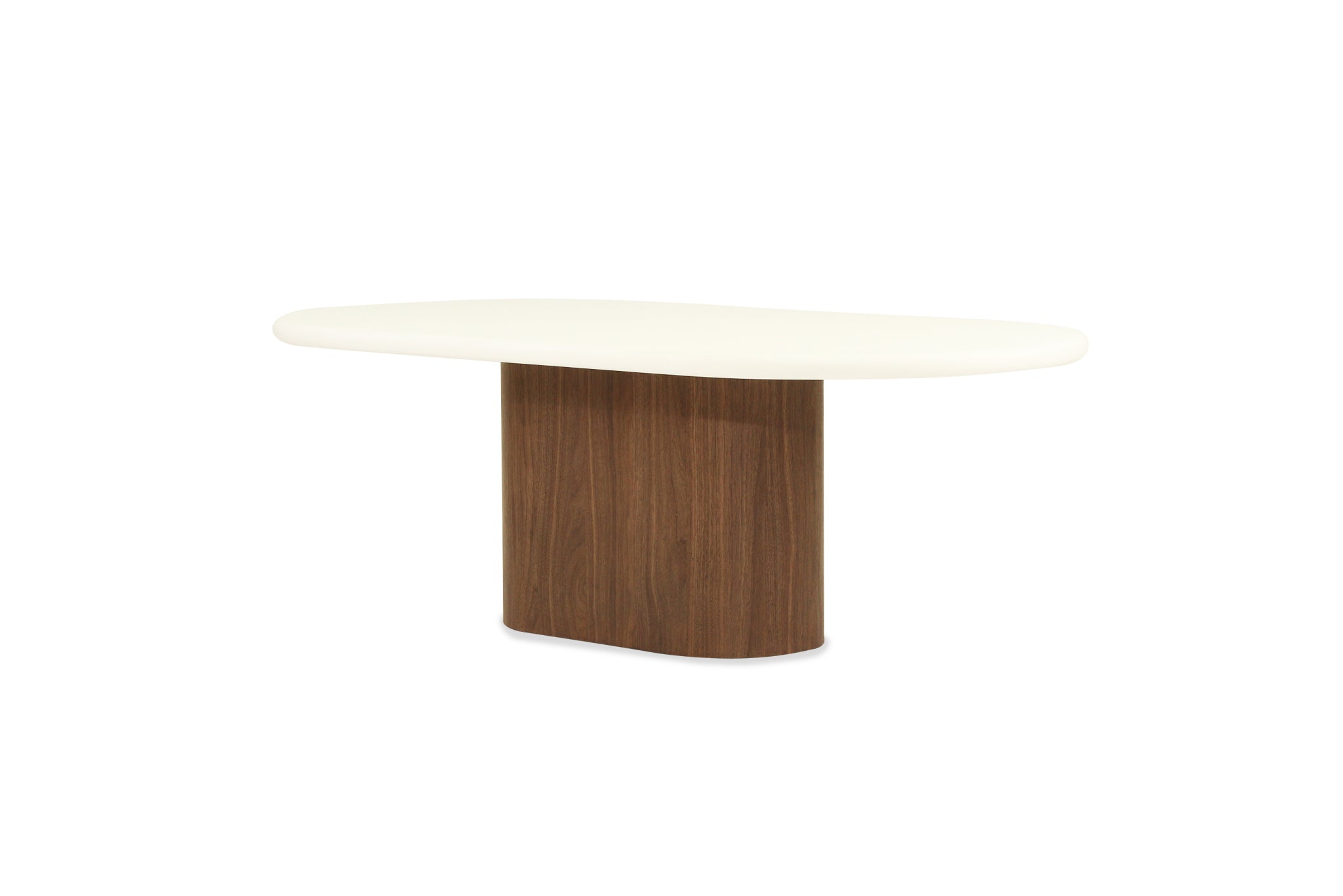 Crafted from white micro cement and featuring a natural oak veneer base, the Harlow Oval Coffee Table is a stylish addition to any living space.