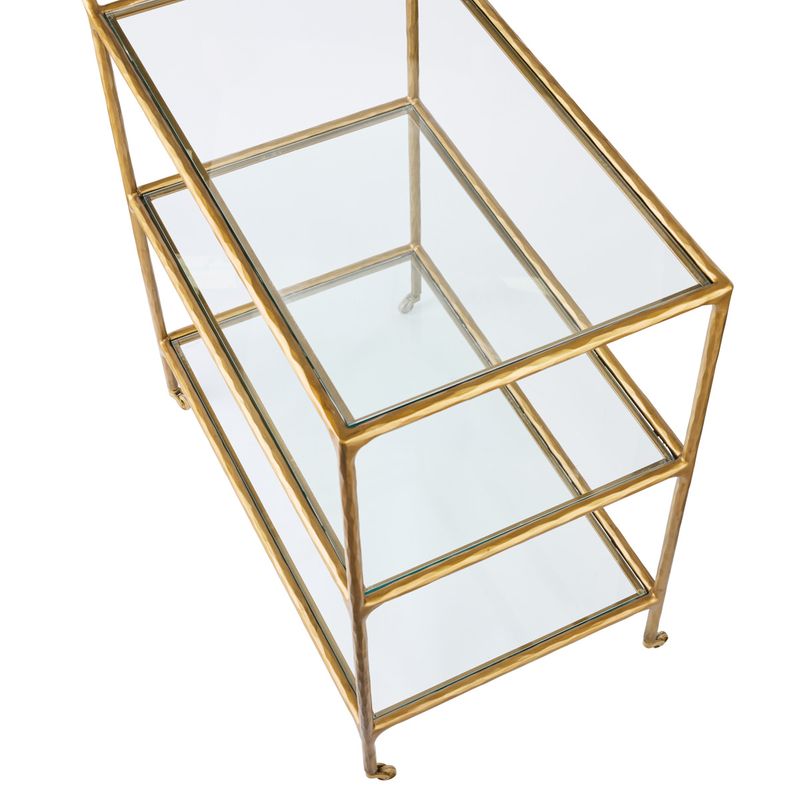 Transform your living space with the Heston Glass Bar Cart, a breathtaking fusion of style and practicality. Featuring a radiant brass frame and sturdy toughened glass shelves, this bar cart shines with its warm metallic glow and open, inviting design. Equipped with four robust castors and stoppers, it glides effortlessly while offering secure stability for every celebration. Its elegant, linear profile harmonizes beautifully with modern and classic interiors, making it a perfect choice for serving drinks or displaying cherished decor. As a stunning centerpiece in the Heston range, this bar cart ignites your home with timeless elegance and heartfelt functionality.