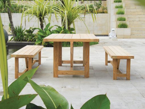 The Highlander Outdoor Table is made from solid reclaimed teak and is equally at home inside or out in the elements.