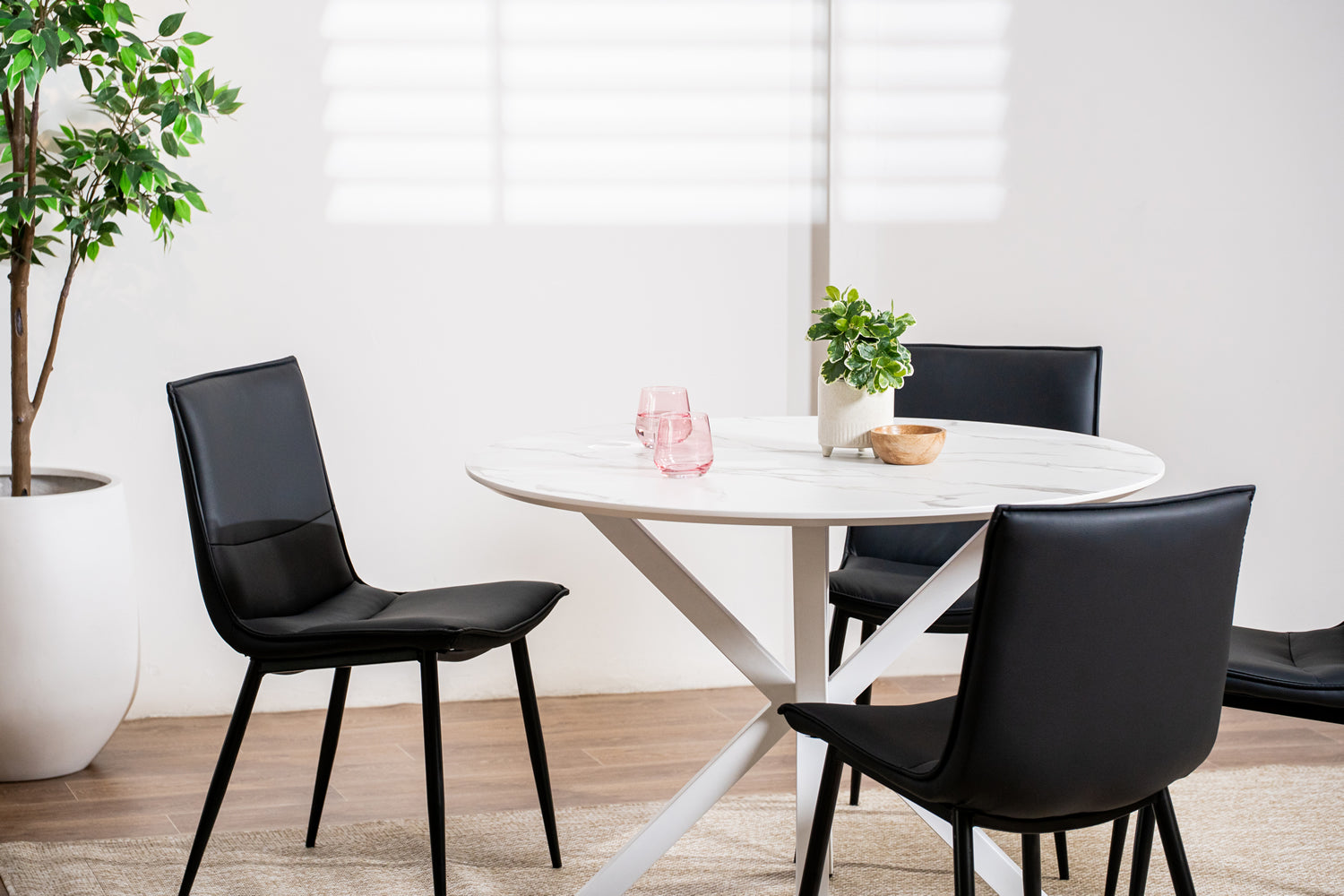 Introducing the Luana Dining Chair! This attractive chair is perfect for any dining room, as it combines style and comfort in its design. The frame is made of black powder-coated steel, giving it a modern look that's sure to bring a contemporary touch to your space. Its upholstery is available in either textured boucle fabric or PU, so you can choose whichever option works best for you and your decorating preference. This chair has a supportive back shape and padded seat cushion, providing maximum comfort while you dine with family or friends. Not only does this chair look great, but its lightweight design makes it easy to move around if needed. Don't miss out on the Luana Dining Chair - order yours today!