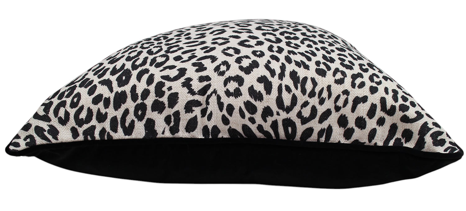 This cushion features a bold, contemporary take on a classic leopard pattern. The black-on-neutral design creates a striking, high-contrast look that instantly elevates any room. Its textured fabric gives the pattern depth and richness, making it a standout accent on sofas, armchairs, or layered bed styling. Perfect for adding a touch of modern glamour, effortless edge, and timeless animal-print appeal to your décor.