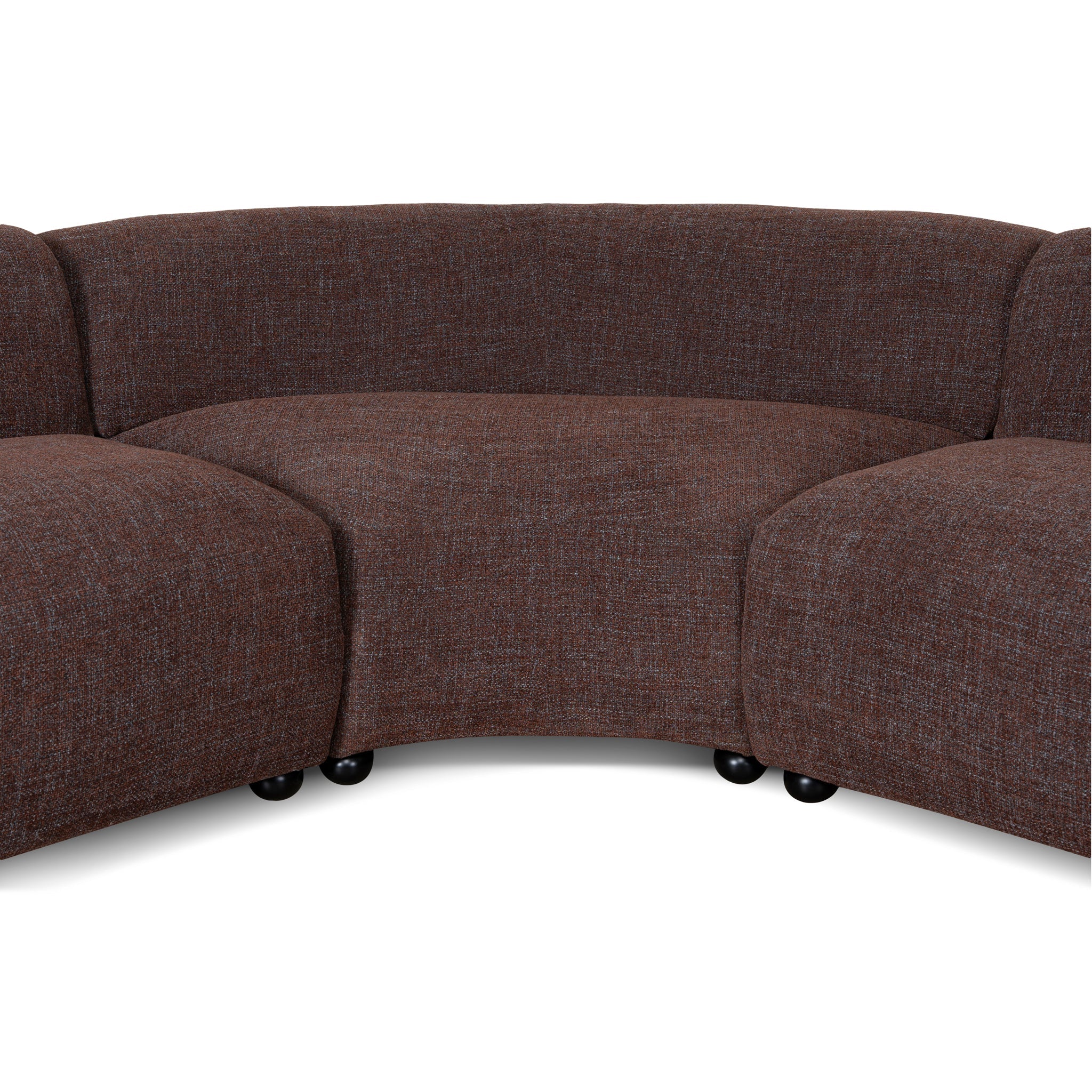 - Showcases a contemporary curved silhouette with a modular corner layout
