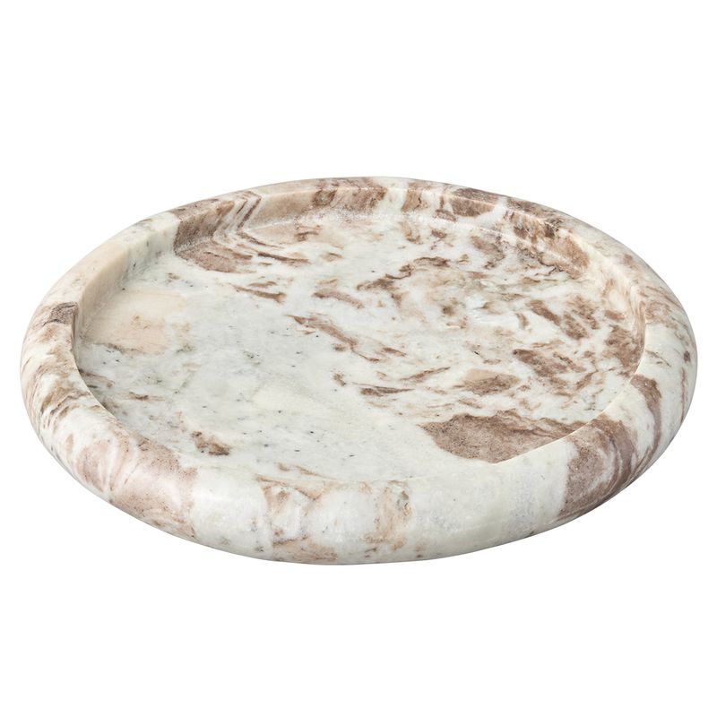 The Echo Marble Tray is a sculptural accent piece crafted from smooth marble in warm, natural tones. Its round form and softly recessed centre make it ideal for styling on coffee tables, vanities, or shelving perfect for holding keys, jewellery, or decorative objects. The unique veining ensures each piece is one of a kind. Blending functionality with organic elegance, the Echo Tray is available in two sizes, Small and Large to suit a range of styling needs.