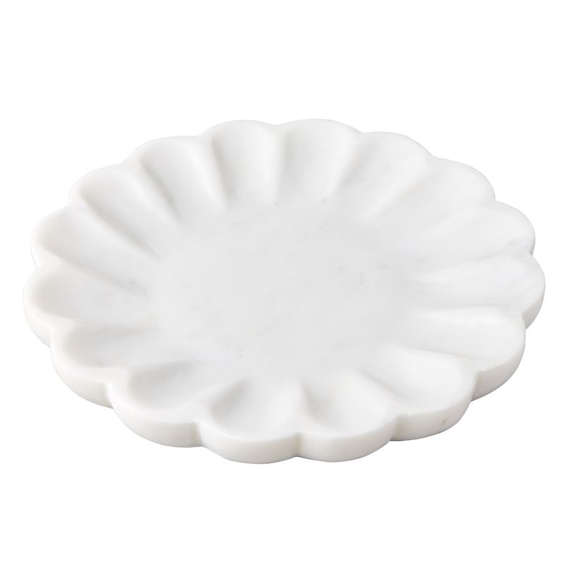 Graceful and sculptural, the Stellar Marble Round Tray introduces a quiet sense of luxury to any surface. Hand-carved from solid marble, its polished finish and gently curved, petal-like edges create a refined silhouette that is both functional and decorative. Whether styled as a catchall on a console, a centrepiece on a coffee table, or a sophisticated accent on a vanity, it brings natural texture and timeless elegance to the space. Available in White and Beige for versatile, considered styling.