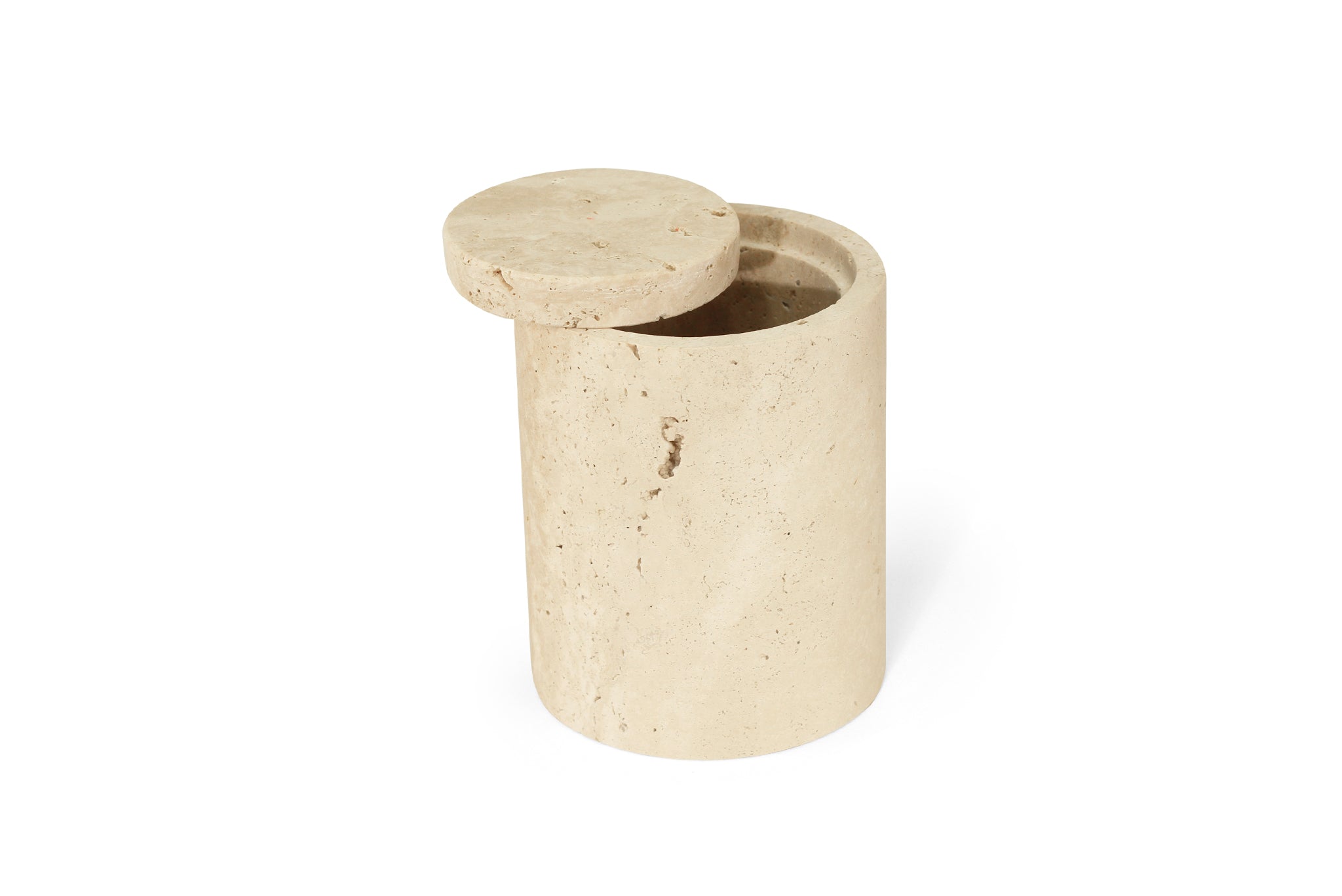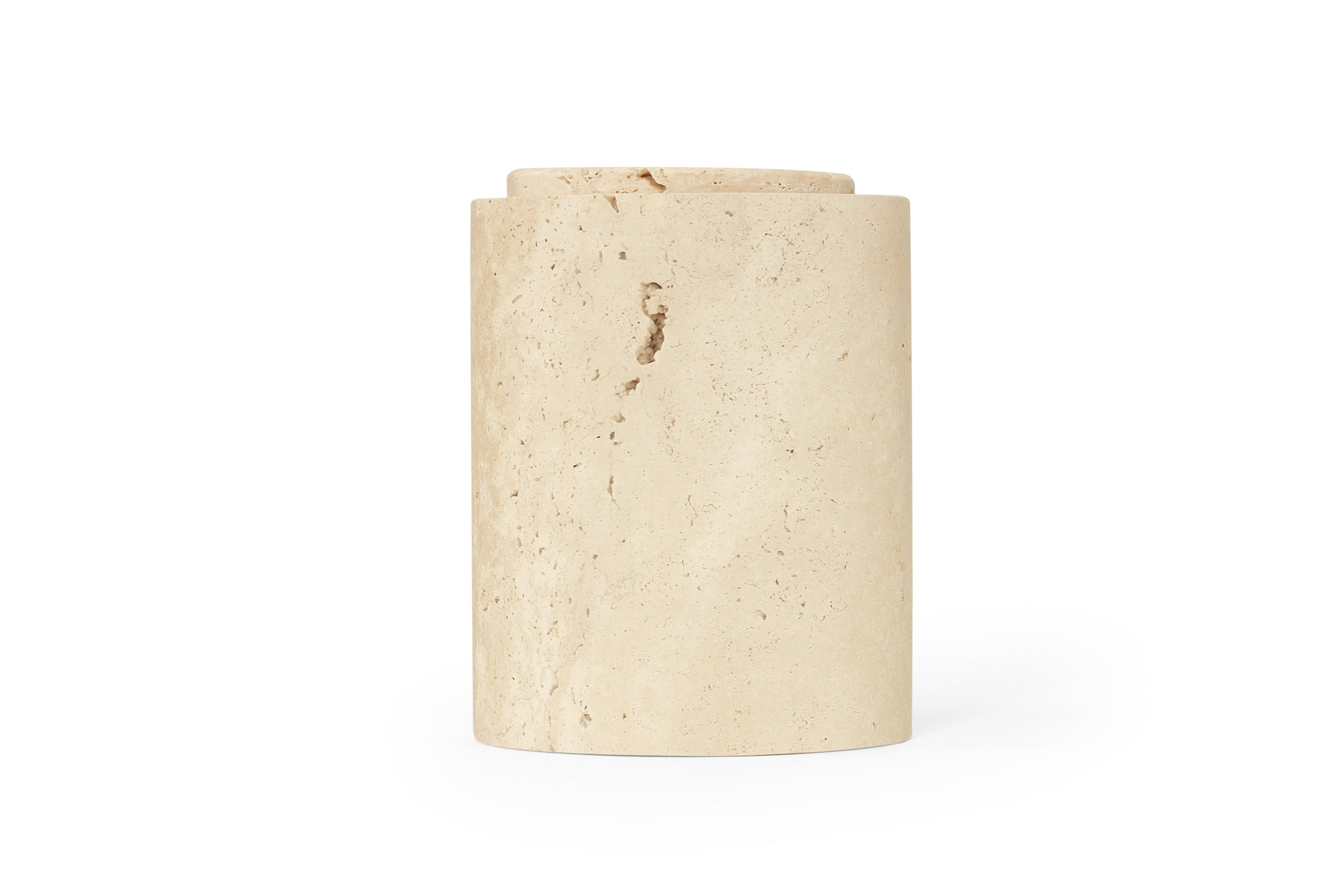 Striking and sculptural, the Jillian Vase is a refined decorative piece that blends natural beauty with thoughtful design. Expertly crafted from natural travertine, each piece showcases subtle textures, earthy tones, and organic variations that make it truly one of a kind. The form is completed with a removable lid that rests neatly inside the vessel, allowing it to be styled open or closed. Whether displayed as a standalone statement or used to store cherished items, the Jillian Vase brings timeless elegance and artisanal charm to any space.
