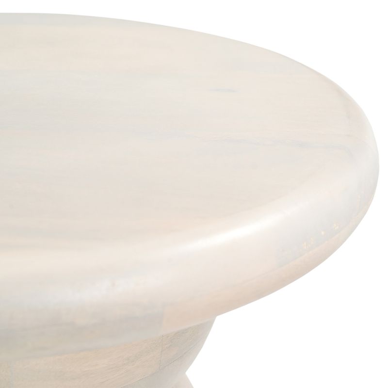 Part of the new Denison range, the Denison Side Table brings sculptural elegance to contemporary interiors. Expertly crafted from solid mango wood with a smooth white-stained finish, it features a rounded top and a softly curved pedestal base, creating a bold yet organic silhouette. Designed as a functional accent for living spaces or bedrooms, this piece blends artisanal craftsmanship with modern form. The result is a timeless table that introduces texture, warmth and understated sophistication to any setting.