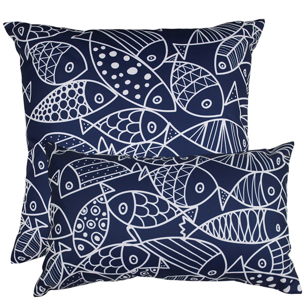 Add a splash of seaside charm to your outdoor setting with the Coastal Catch cushion. Featuring a playful school of stylised fish in crisp white against a deep navy backdrop, this design brings a fresh, modern coastal vibe to your patio or poolside. Its bold contrast and graphic simplicity make it easy to mix and match with other nautical or tropical styles. Crafted from durable, weather-resistant fabric, it’s made to resist fading and moisture-keeping your outdoor space stylish season after season.