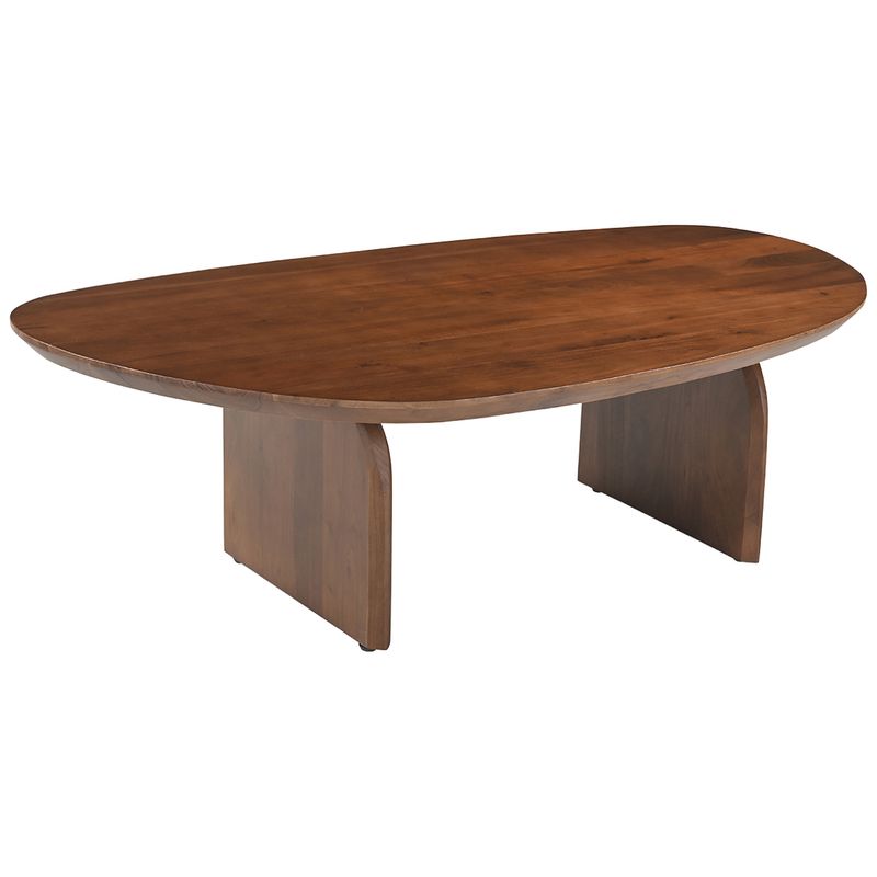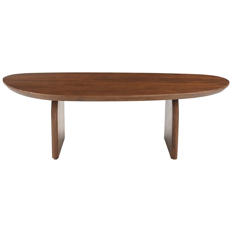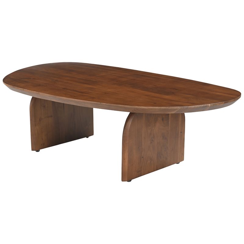 The Nico Coffee Table in walnut finish is crafted from solid acacia wood, showcasing an organic silhouette that blends sculptural elegance with everyday function. Its gently curved top and subtly arched legs bring warmth and sophistication to contemporary, coastal, or modern interiors. The rich walnut tone enhances the natural grain, making it a timeless statement piece for any living space. Also available in black for a bolder, more dramatic aesthetic.