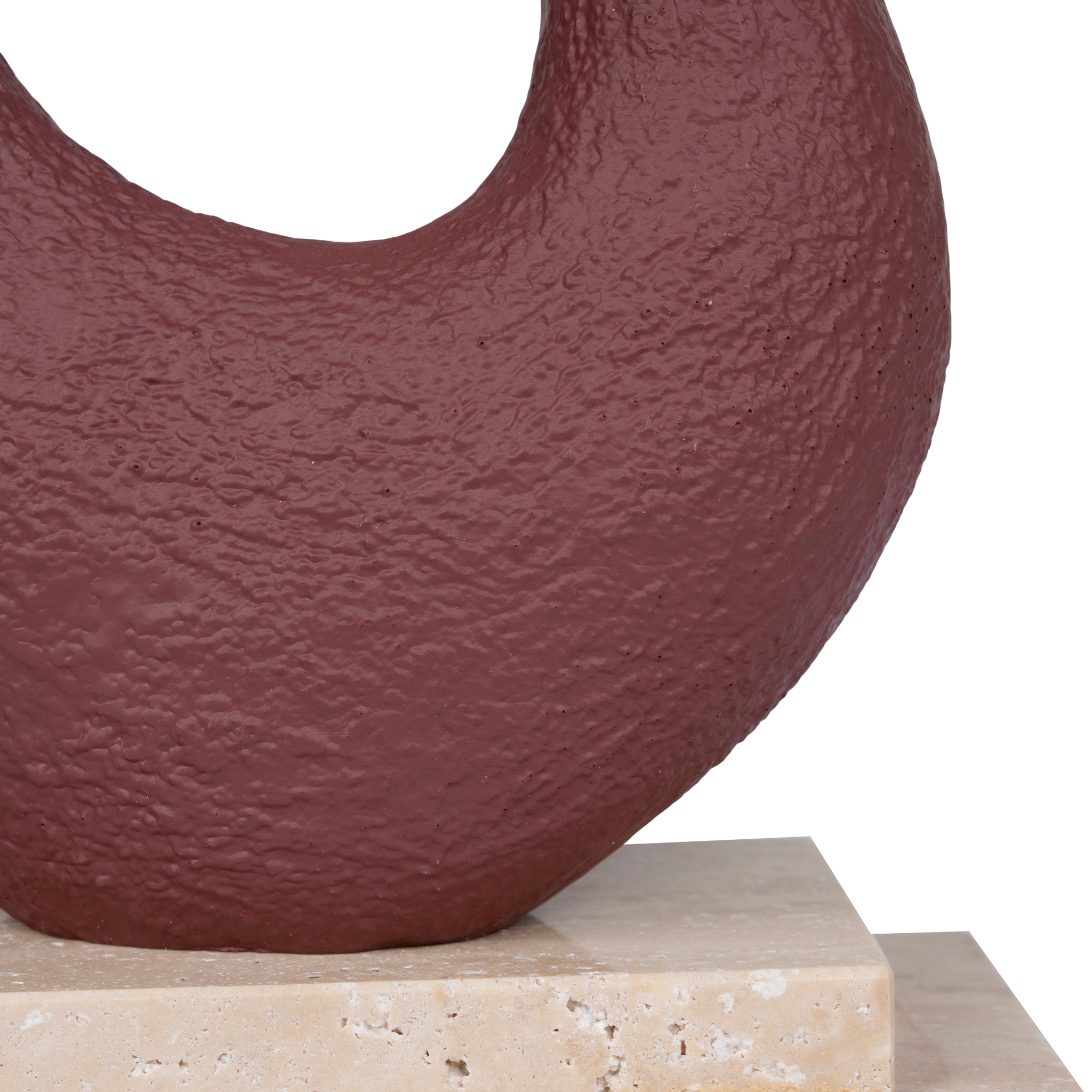 - Two-tier travertine marble base adds contrast with its warm maroon veining