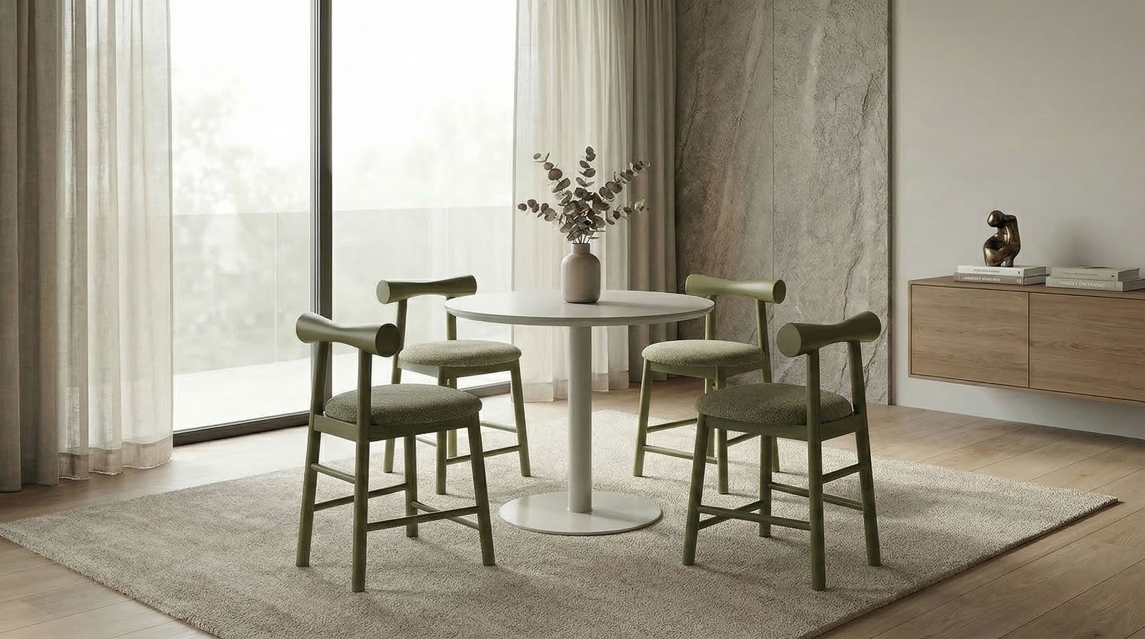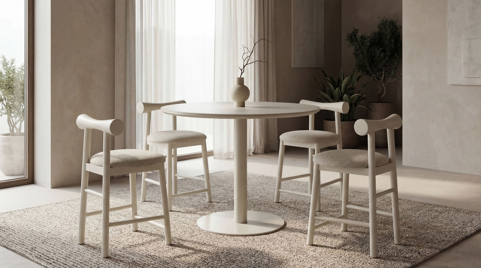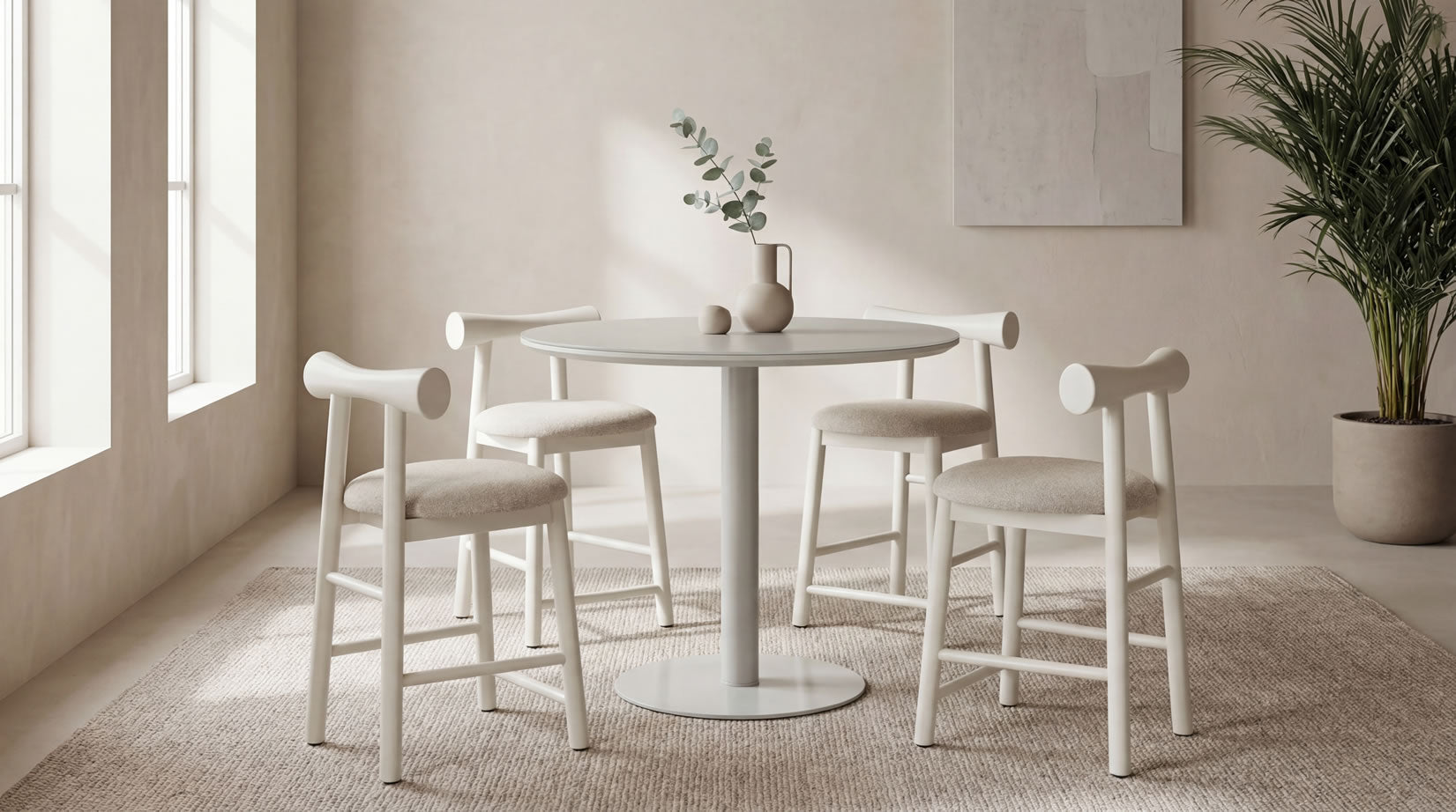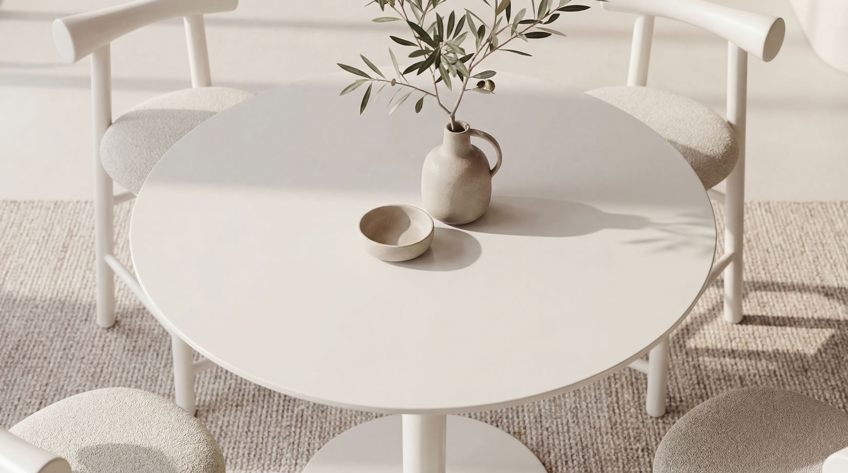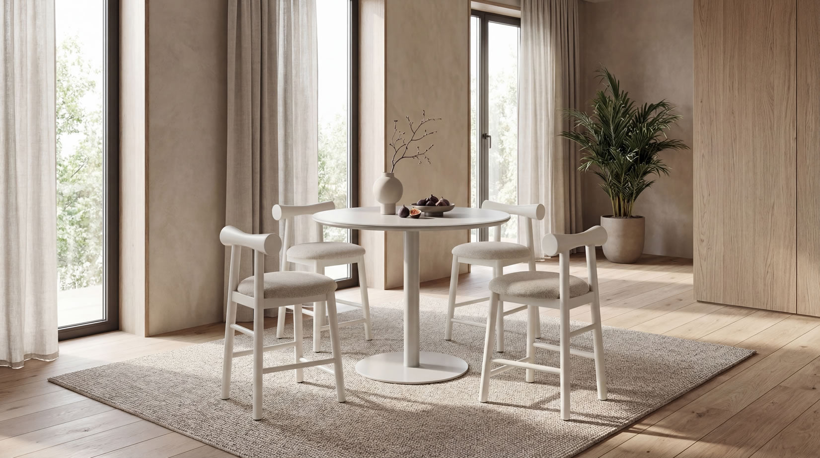 Positano introduces subtle colour through its elegant matte finish and refined proportions. Whether in Dusty Rose for a soft statement or Tofu for a minimalist look, Positano brings sculptural lightness to the dining environment.